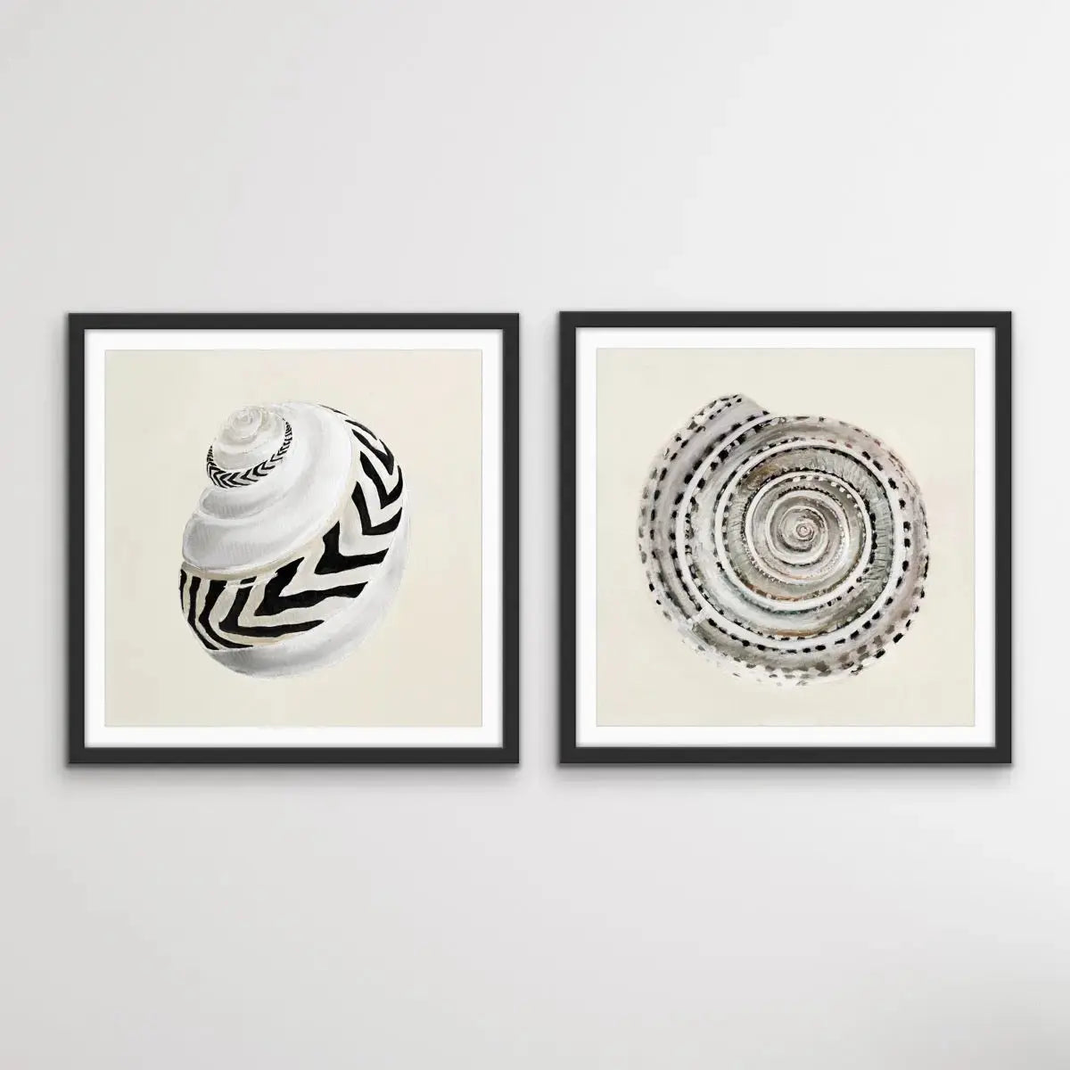 Classic Shell Set - Two Piece Cream and Black Shell Print Set - I Heart Wall Art