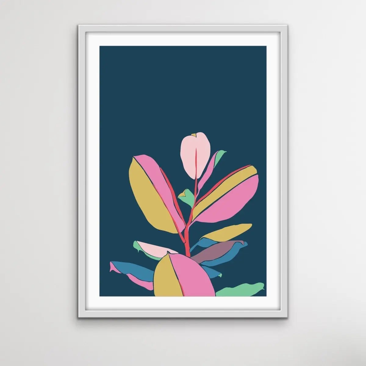 Fiddle Leaf Fig - Turquoise Pink Fiddle Leaf Fig Graphic Wall Art Print Canvas I Heart Wall Art Australia