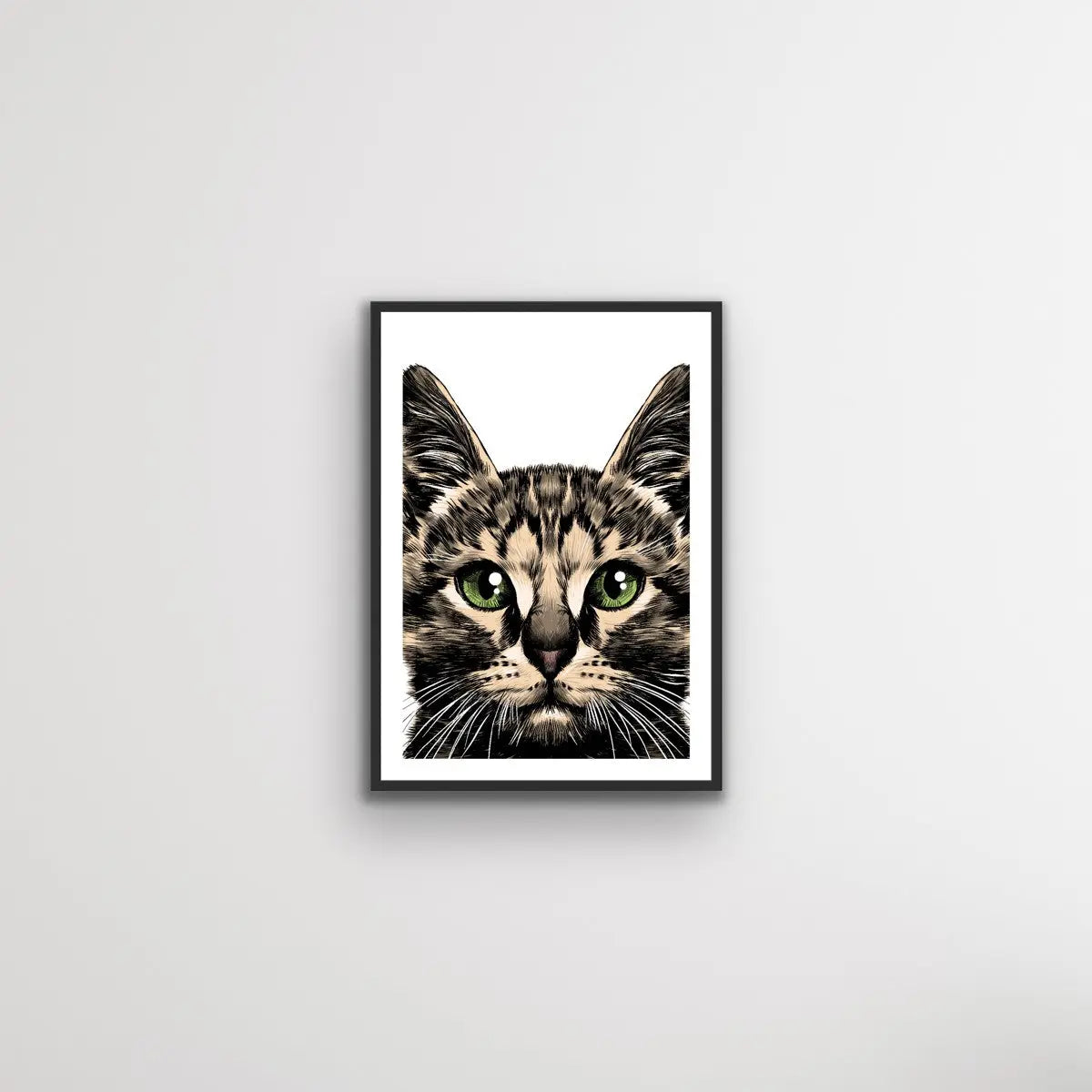 Green Eyed Tabby Cat Art Print Stretched Canvas and Paper Wall Art