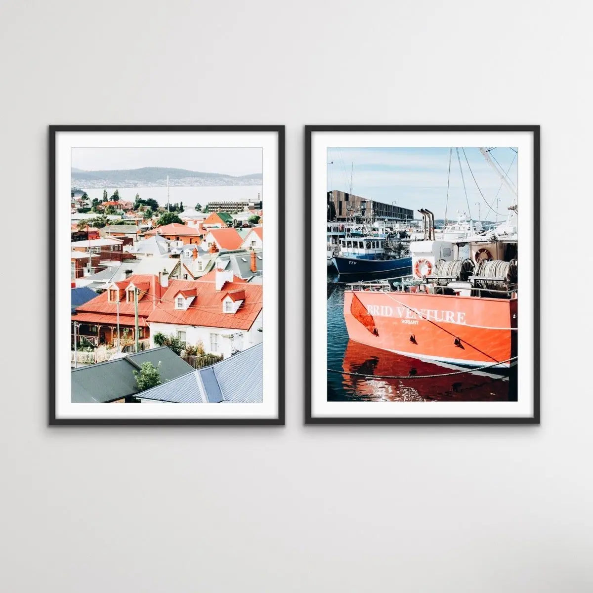 Hobart - Two Piece Photographic Print Set of Hobart Tasmania Houses and Boats Diptych I Heart Wall Art Australia