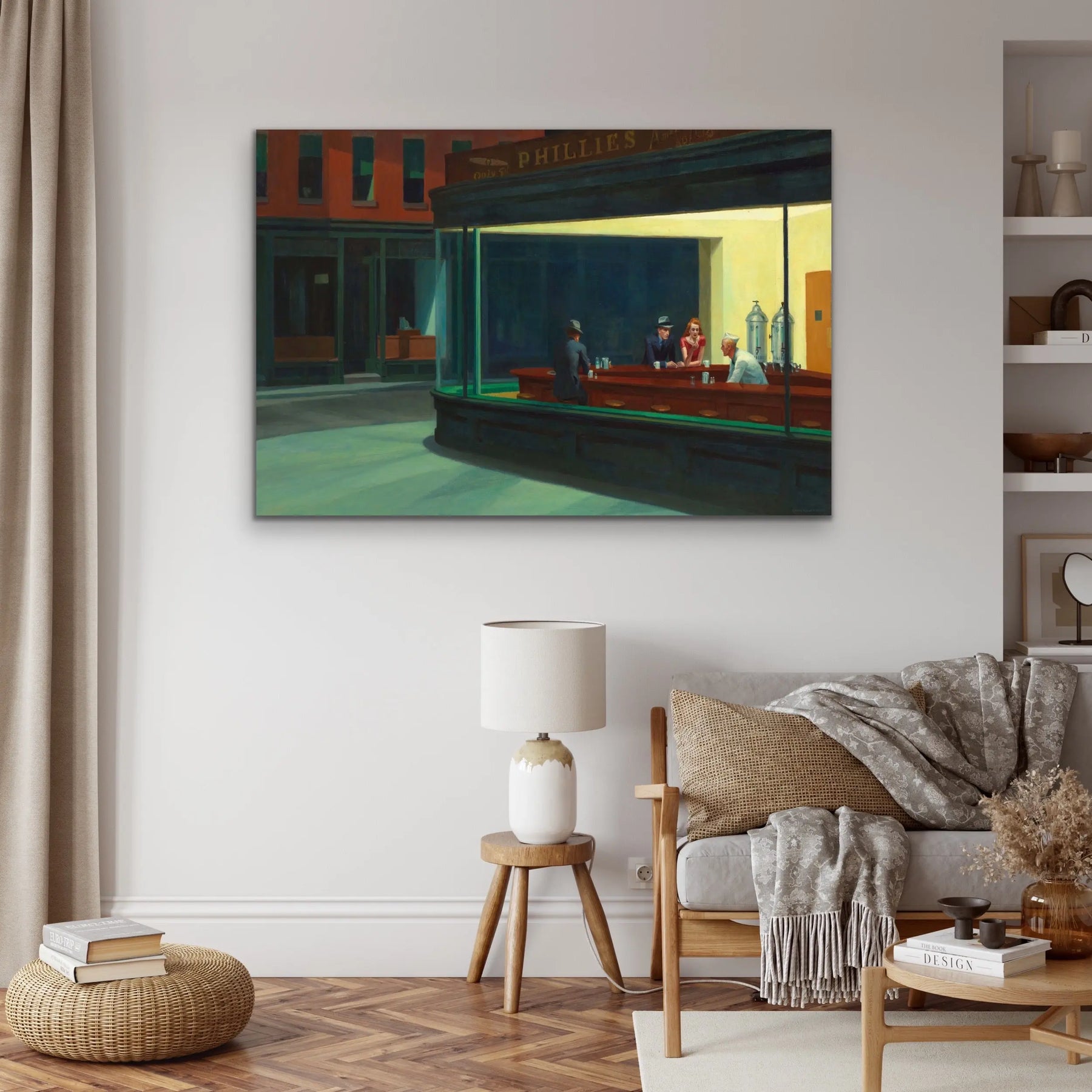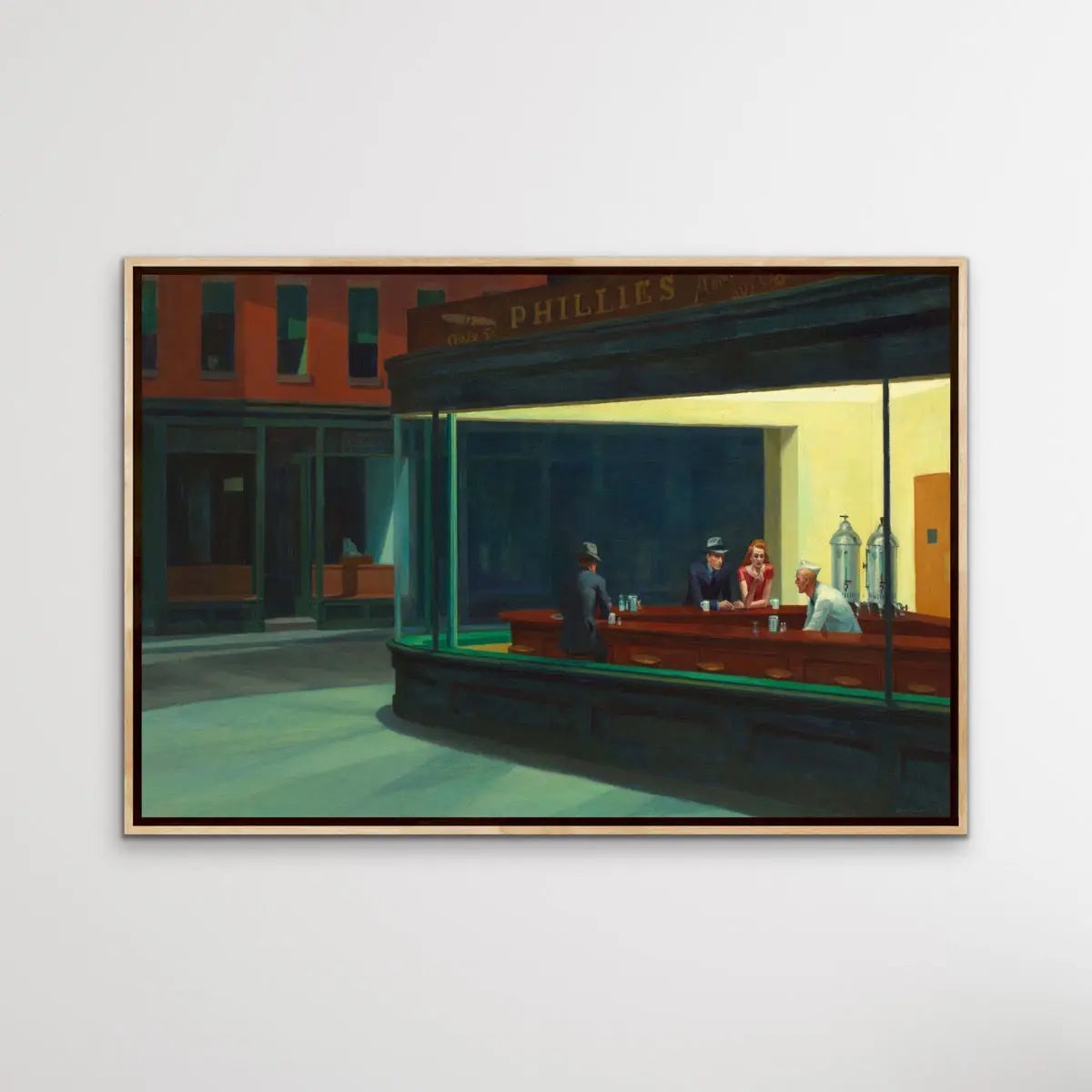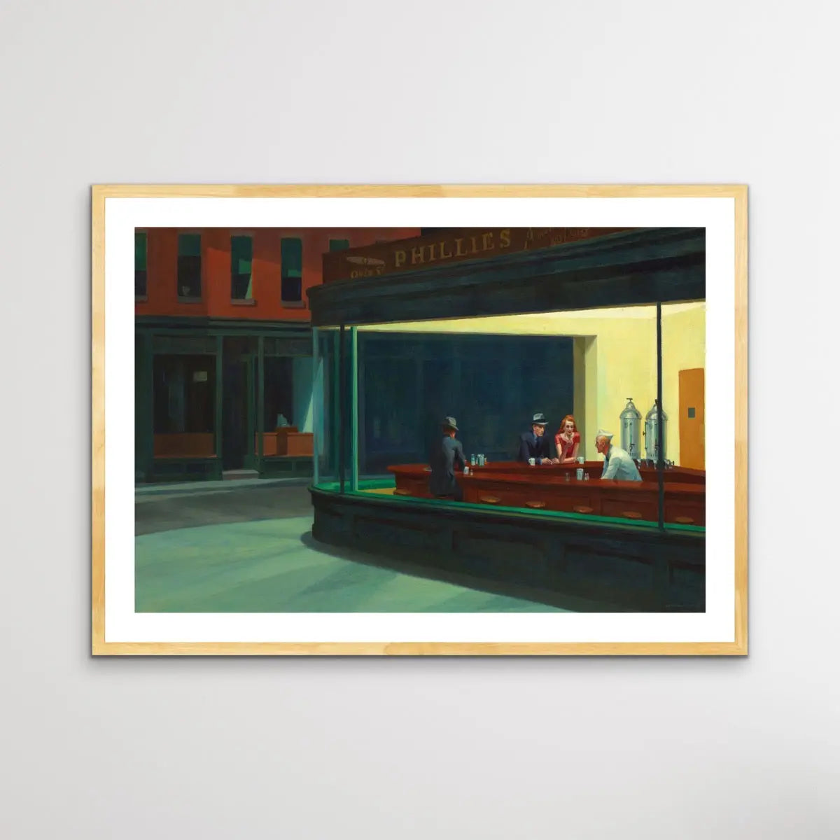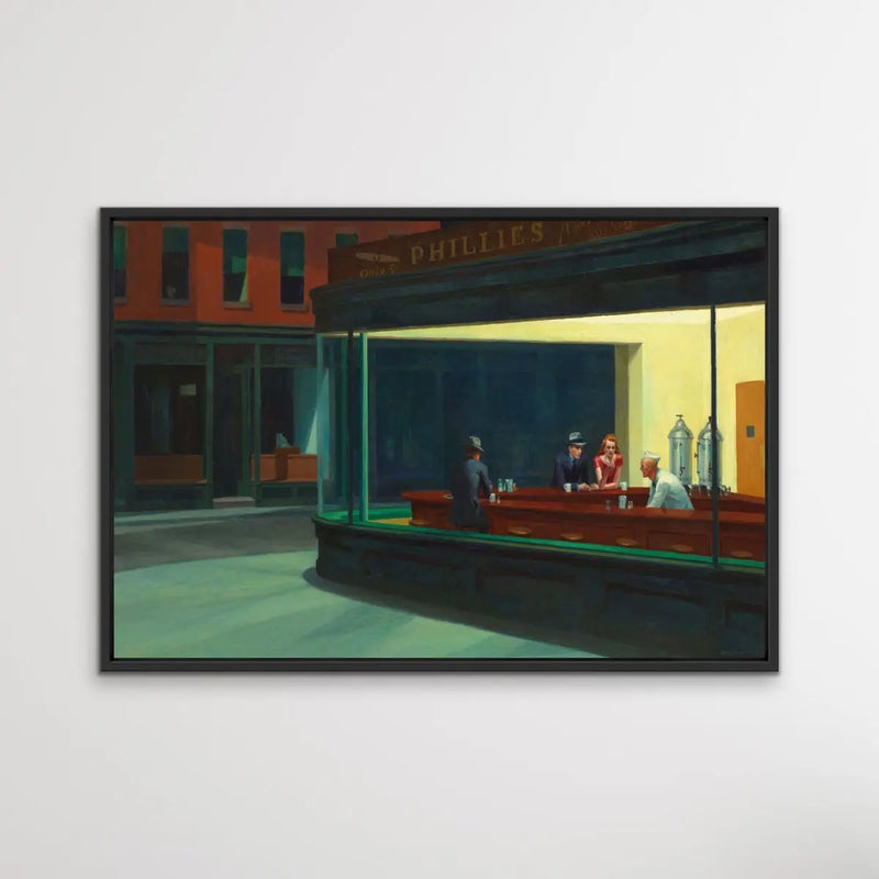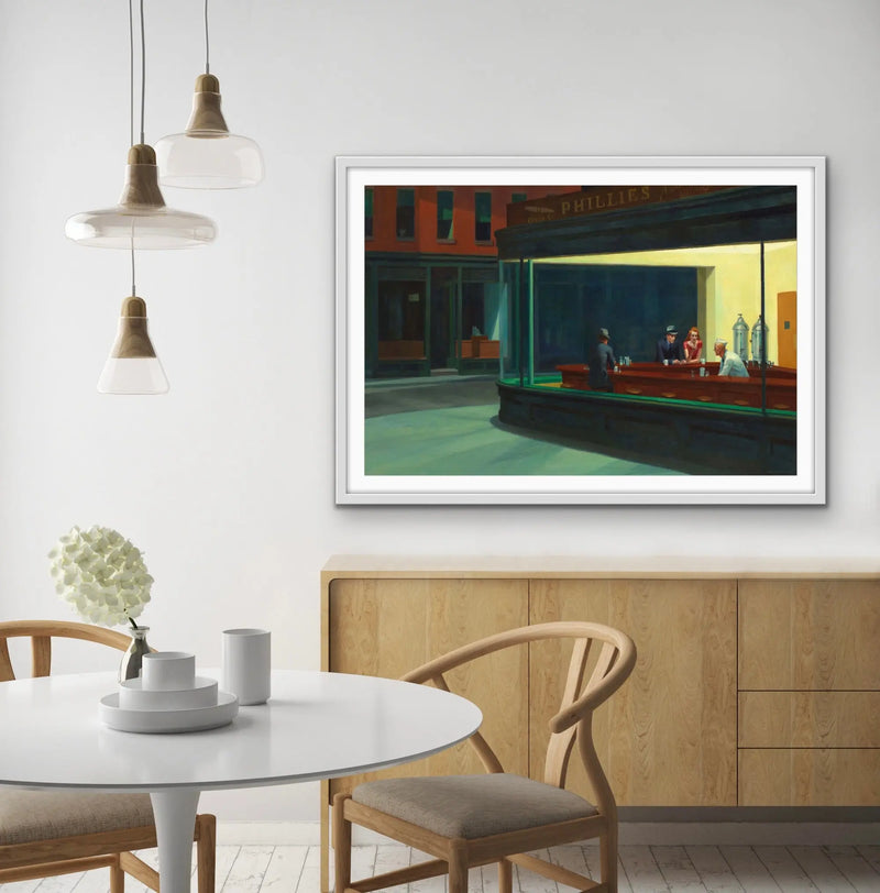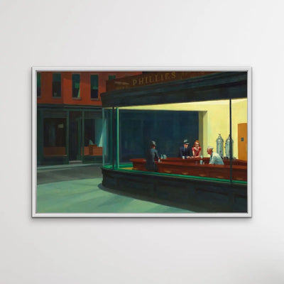 This stunning artwork is a reproduction of mid-century classic, Nighthawks.