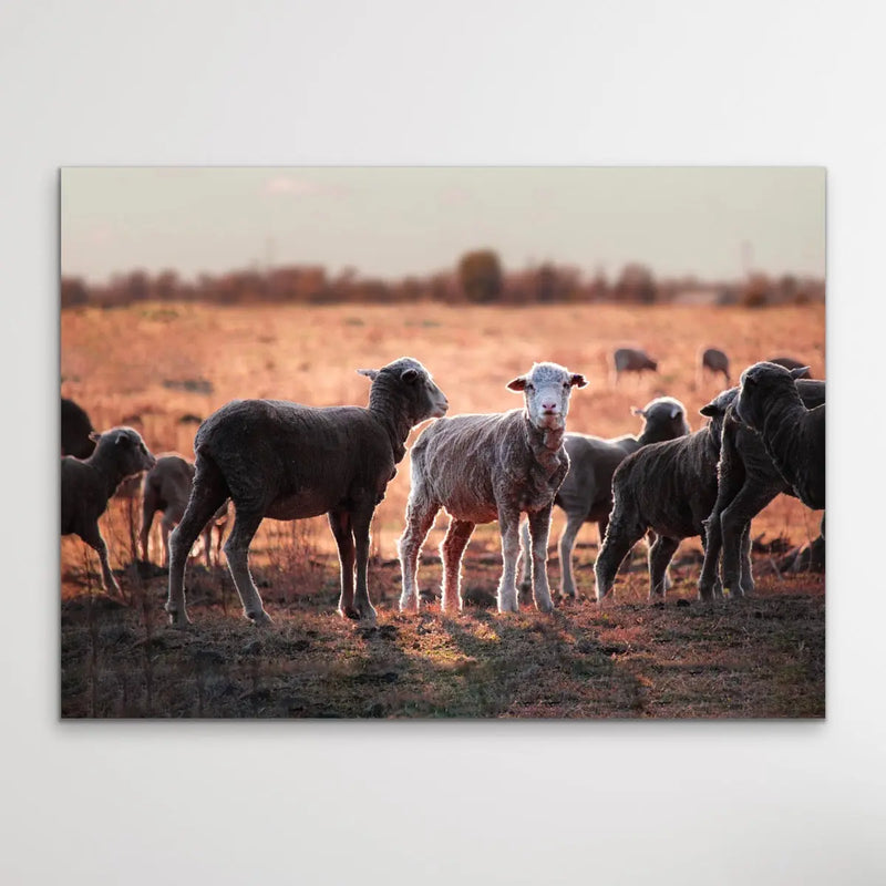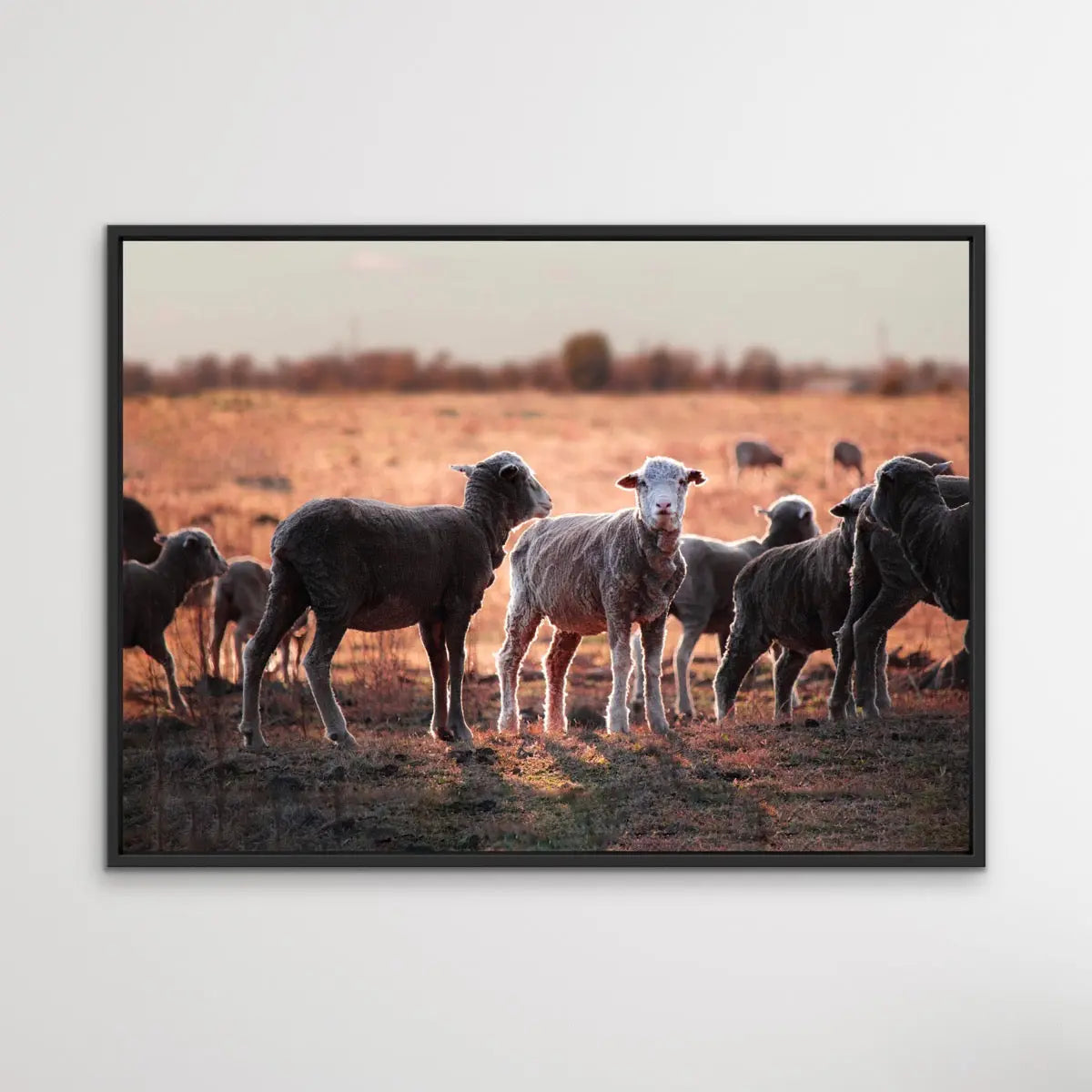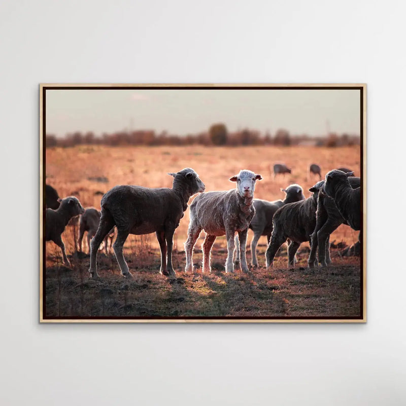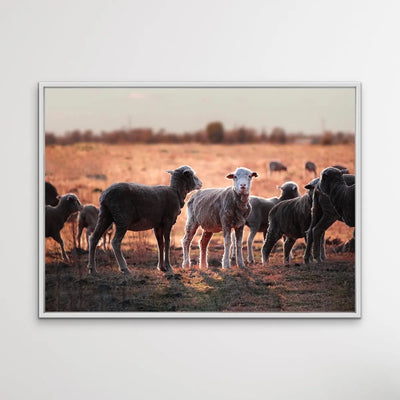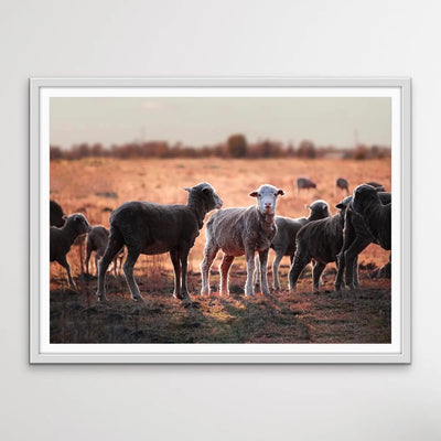 Celebrate beautiful Outback Australia with this photographic print. Featuring sheep against a burnt landscape, this beautiful photographic print is perfectly-coloured and evocative.