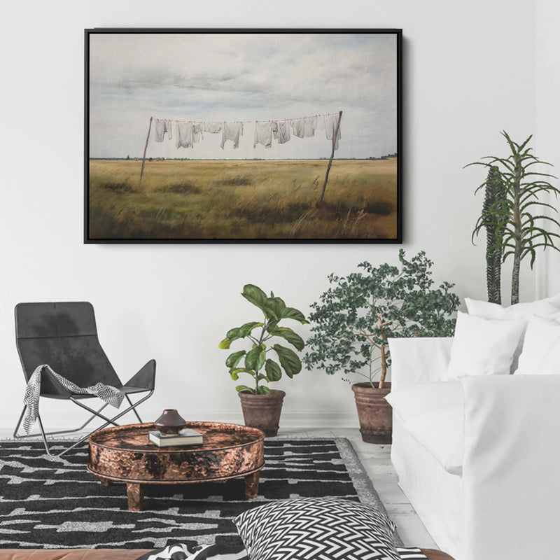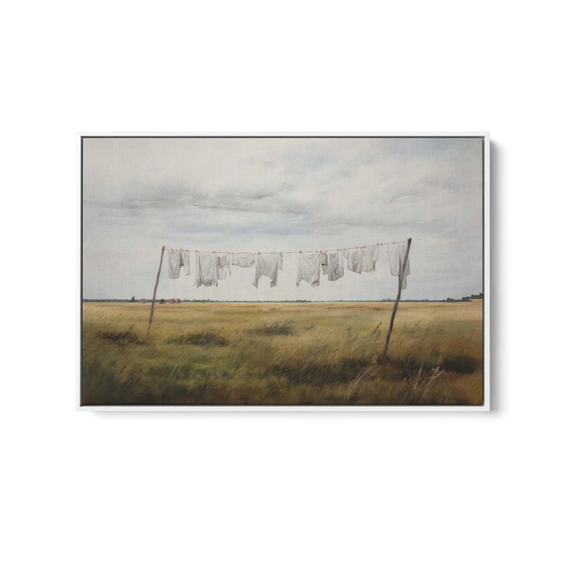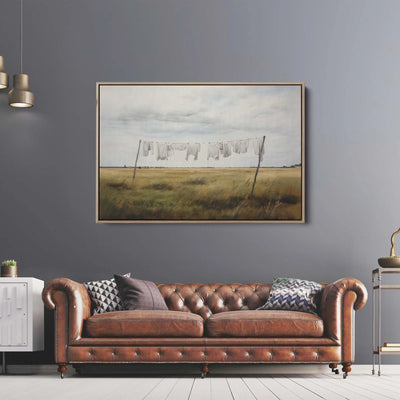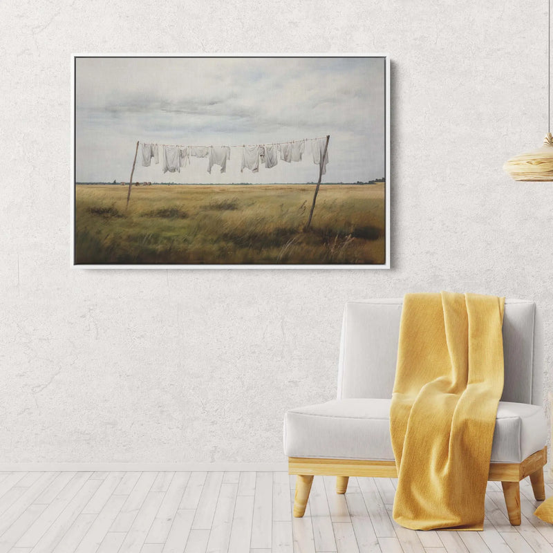 A sweet painting of a clothesline in a country setting, this print is perfect for bringing rustic charm to your laundry or living areas.
