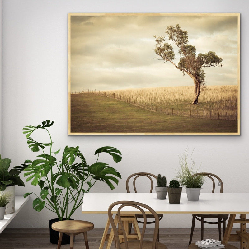 This breathtaking photographic print features an Australian country landscape (shot near Gundagai in New South Wales) and is perfect for contemporary Australian home or workspace styling.