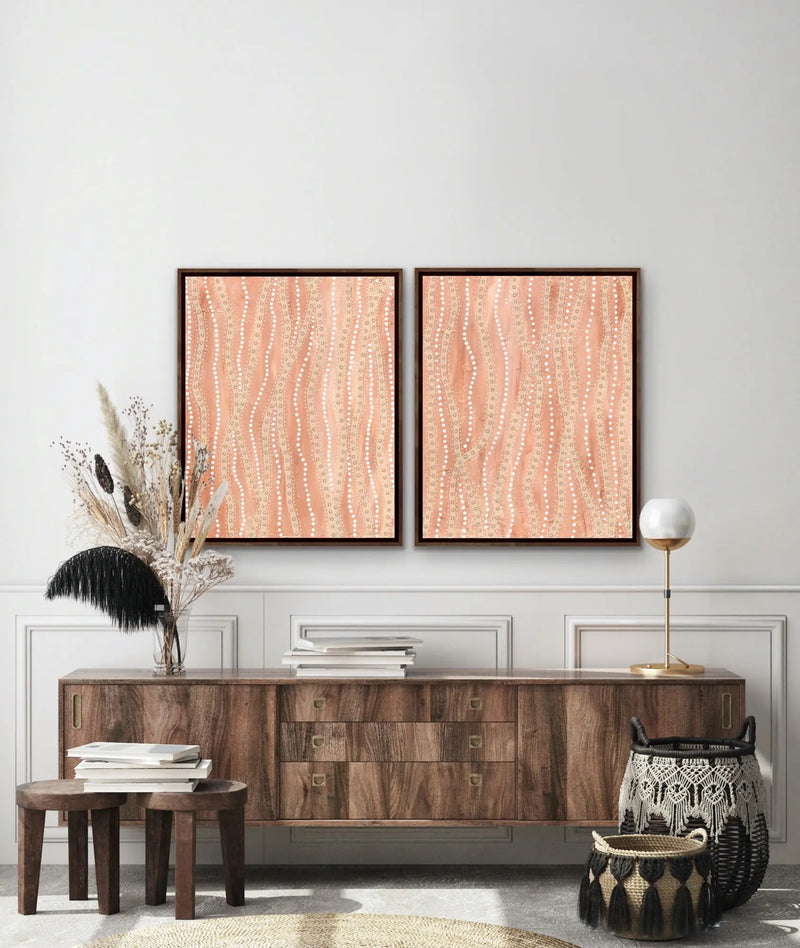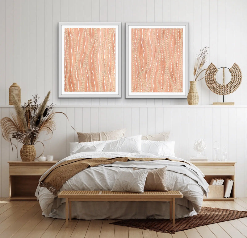 Celebrate beautiful, soft and delicate colours with this two piece print set by Aboriginal + Maltese artist Holly Stowers.