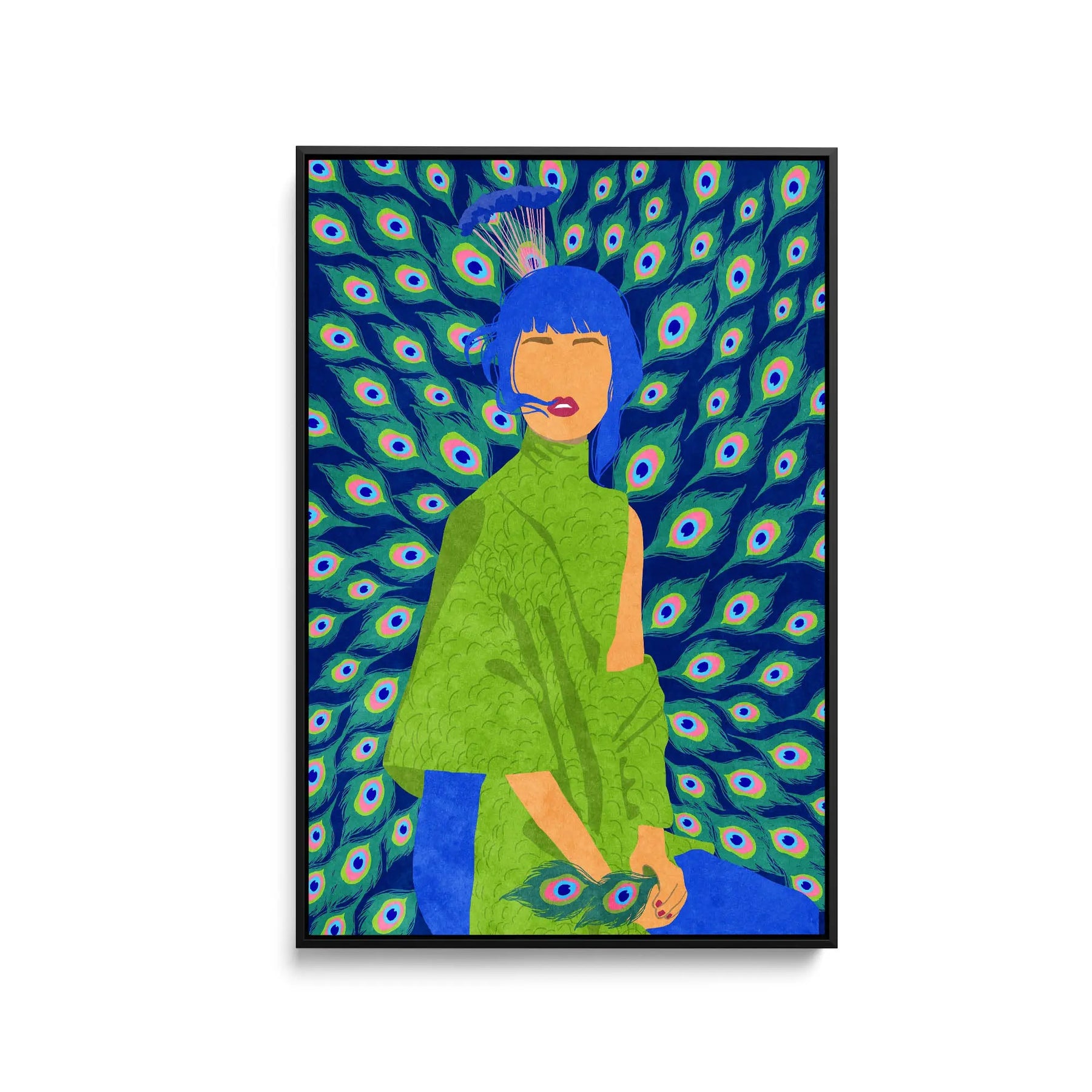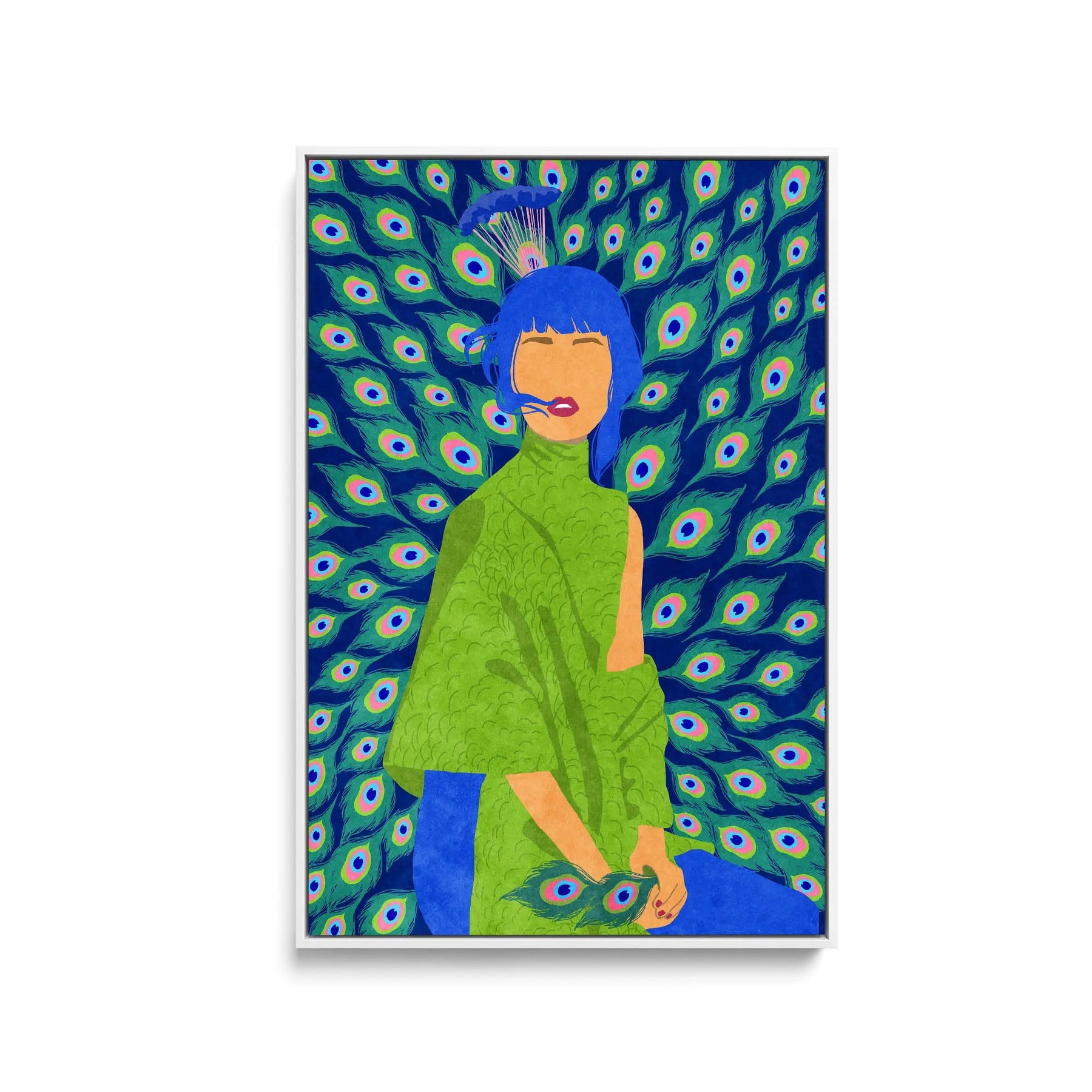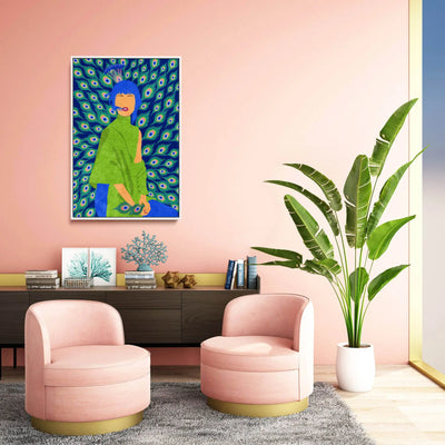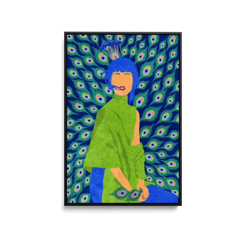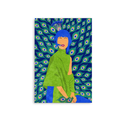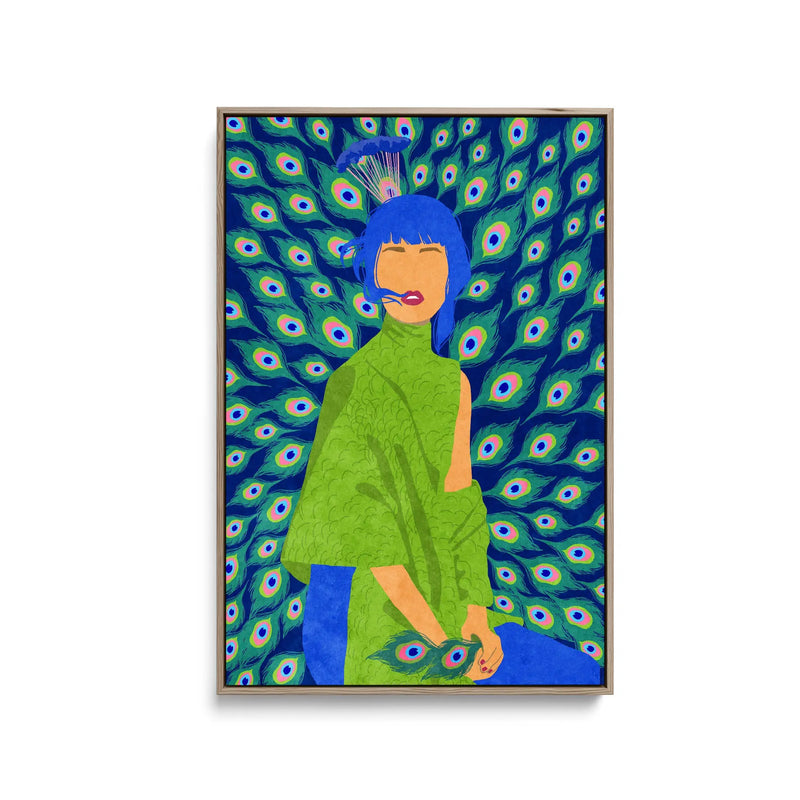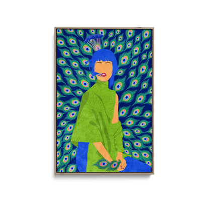 Introducing "Peacock Woman" by Raissa Oltmanns—an exquisite print showcasing the alluring beauty of a peacock in contemporary style. With its rich blue-green tones, this captivating artwork emanates elegance and grace. Let the fun presence of the Peacock Woman enchant your space!