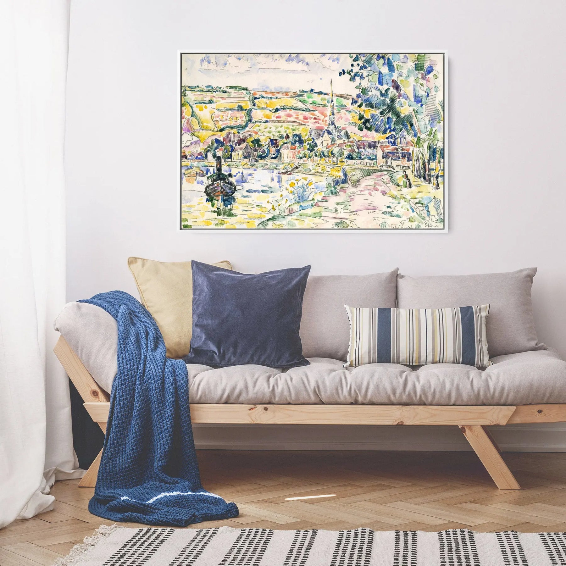 Experience the beauty of Petit Andely-The River Bank by Paul Signac with this stunning Stretched Canvas Print or Framed Fine Art Print. Capturing the essence of the river bank, this artwork brings a touch of nature into your home. The vibrant colors and intricate brushstrokes come to life, creating a mesmerizing visual experience. Whether you choose the stretched canvas or framed option, this artwork is ready to hang and will instantly elevate any space. Add a touch of elegance to your walls and let the tranquility of Petit Andely transport you to a serene riverside escape.