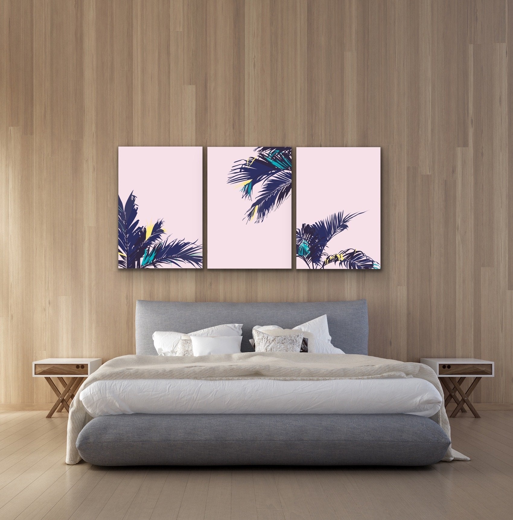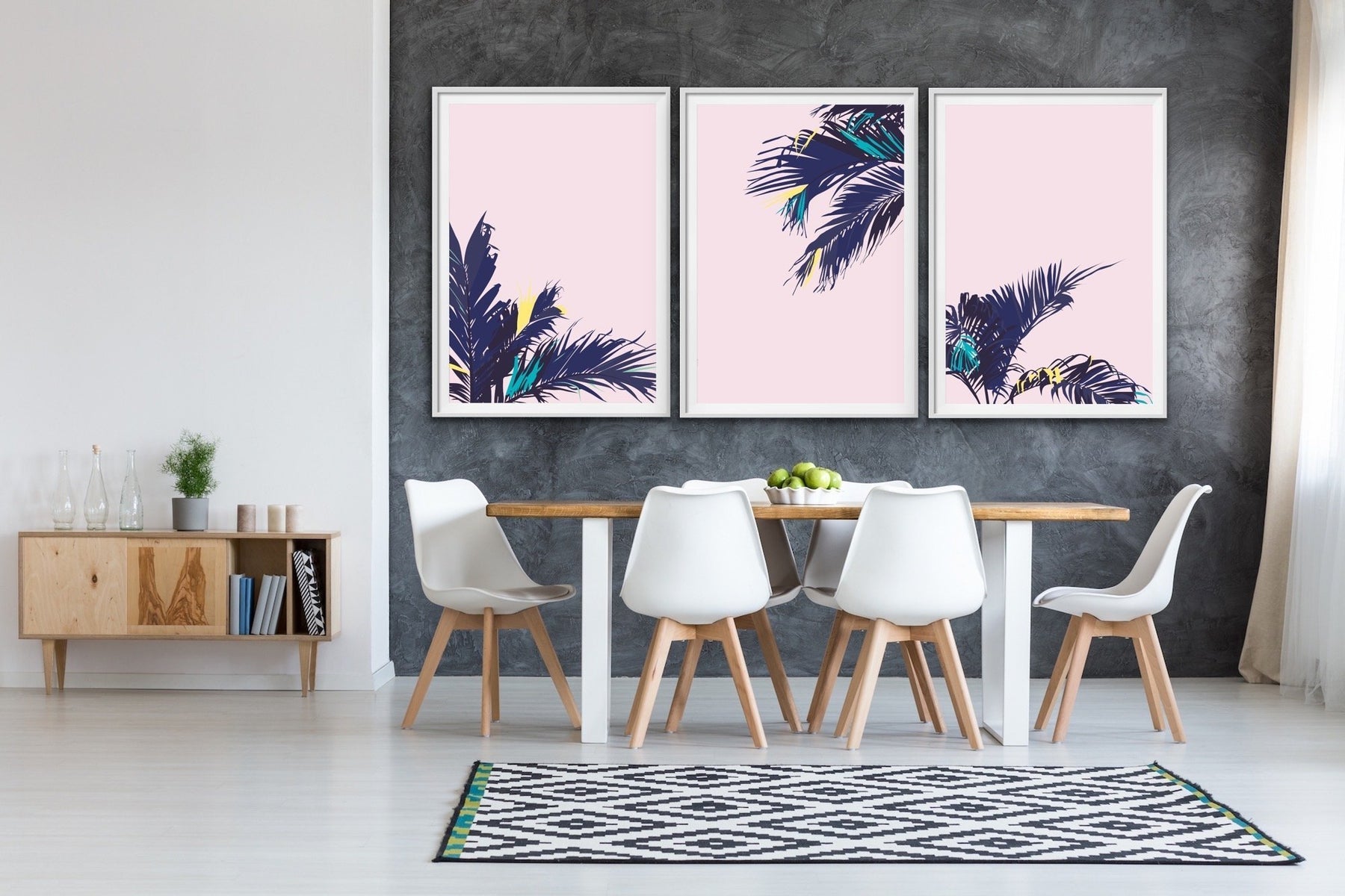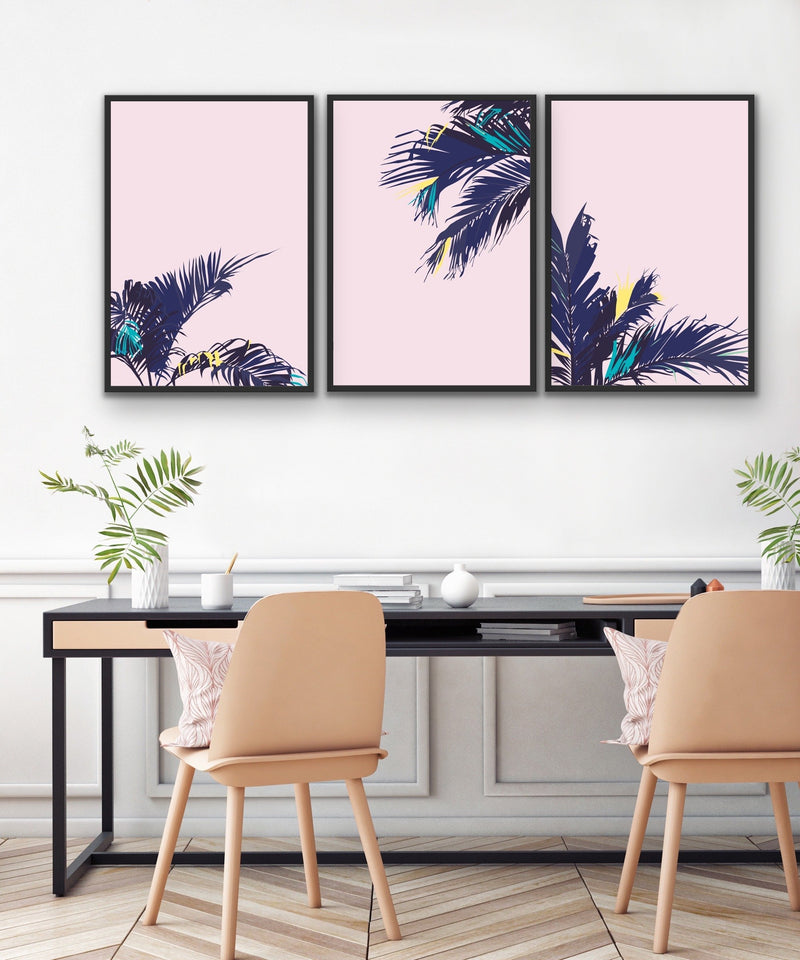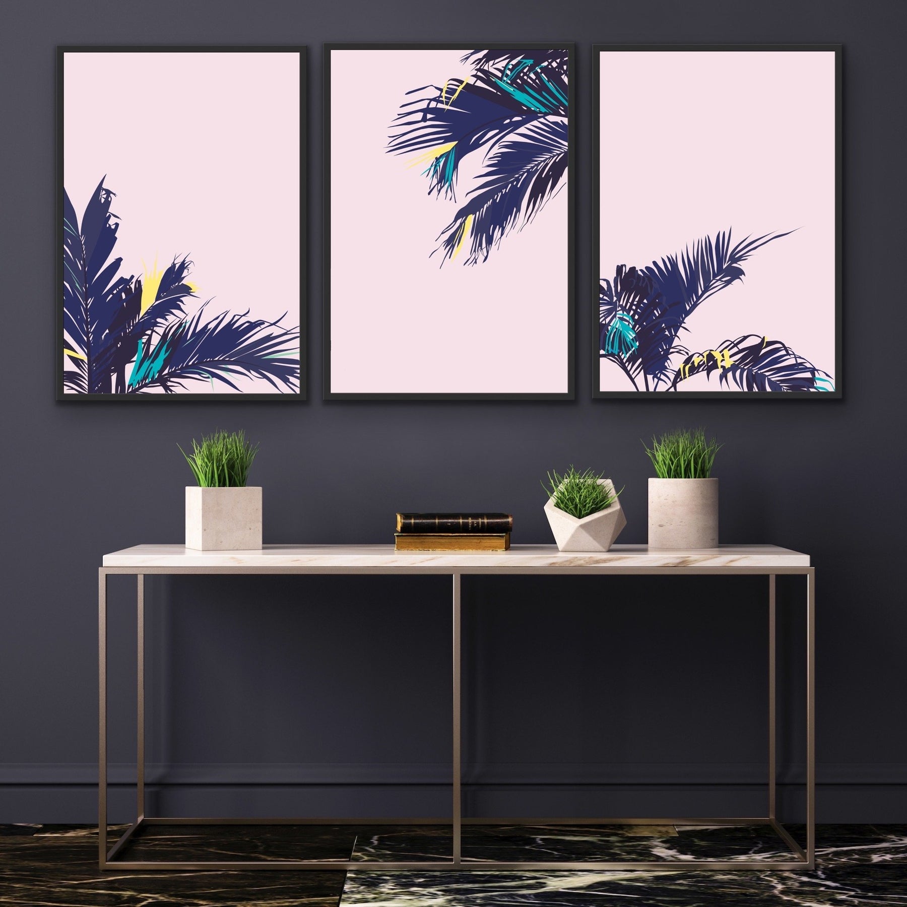 PinkPalms is a a beautiful piece of three panel wall art that you can run large on your walls.