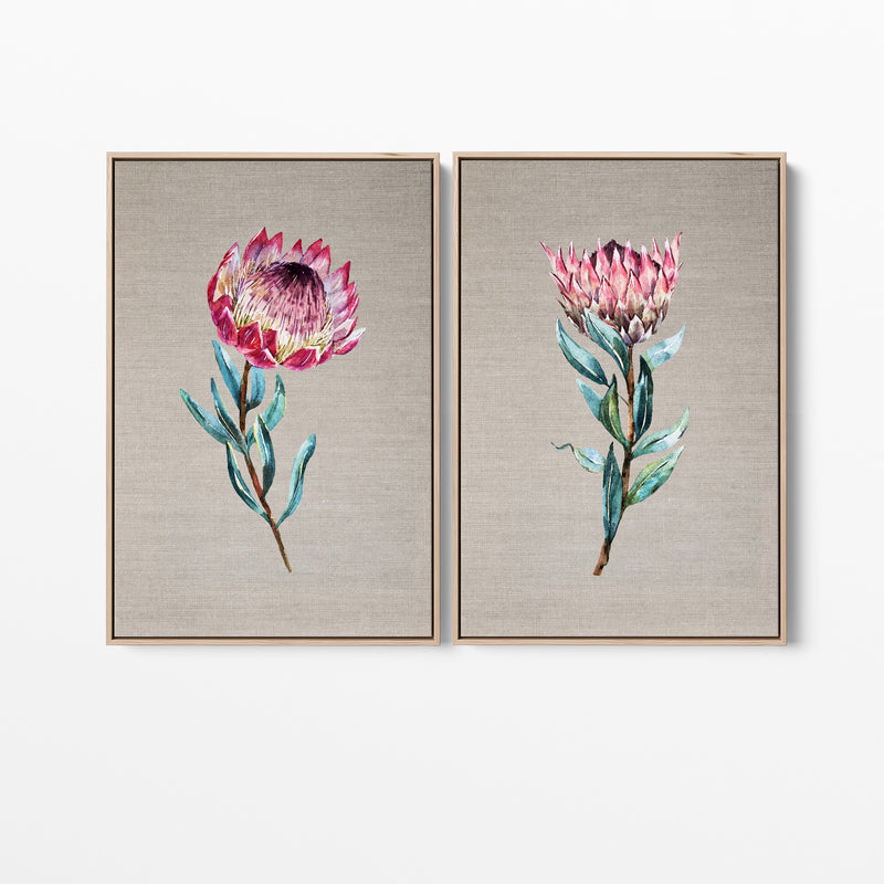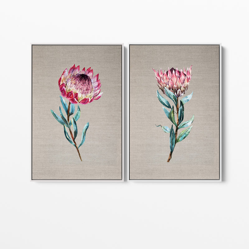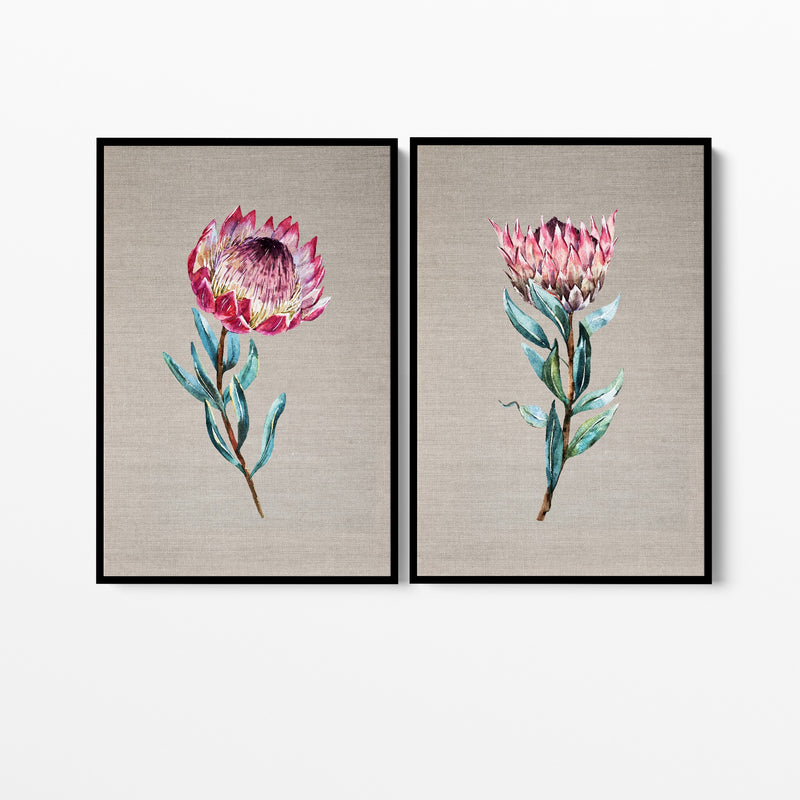 This stunning pairof watercolour protea illustrations feature bold colours against aWhite background. Proteas are the perfect nod to Australian nature and this gorgeous illustration is a much-loved favourite.