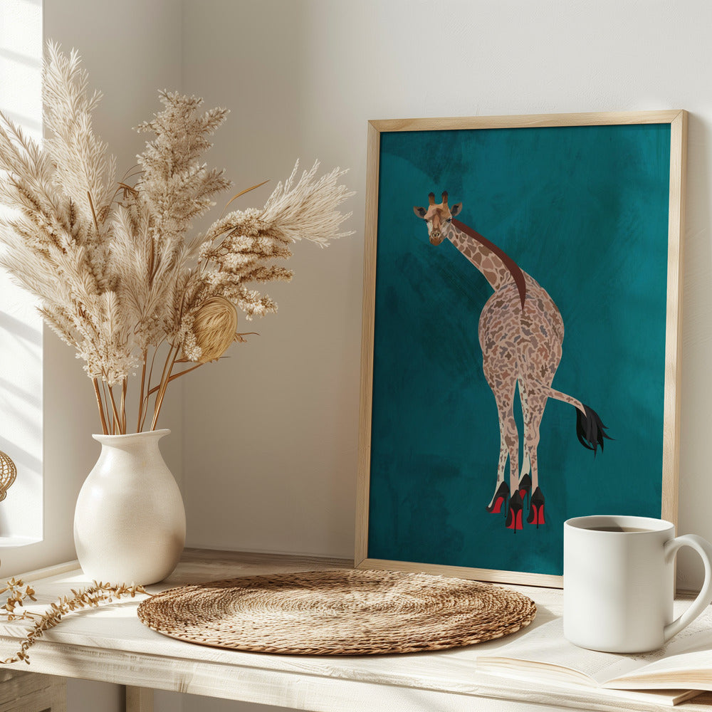 Explore our many print options for Quirky Giraffe Green by artist Sarah Manovski.