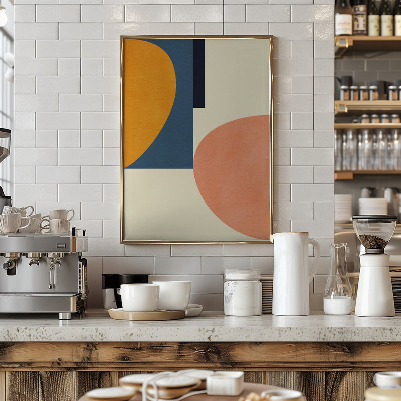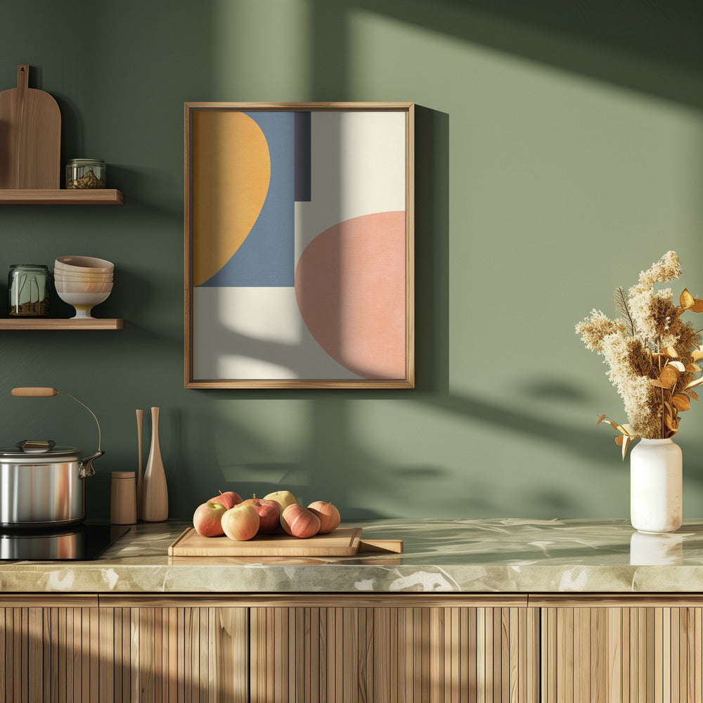 Explore our many print options for Rainbow Plus Shapes Blue Mustard1 by artist Ana Rut Bre.