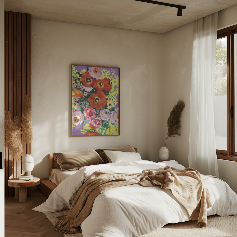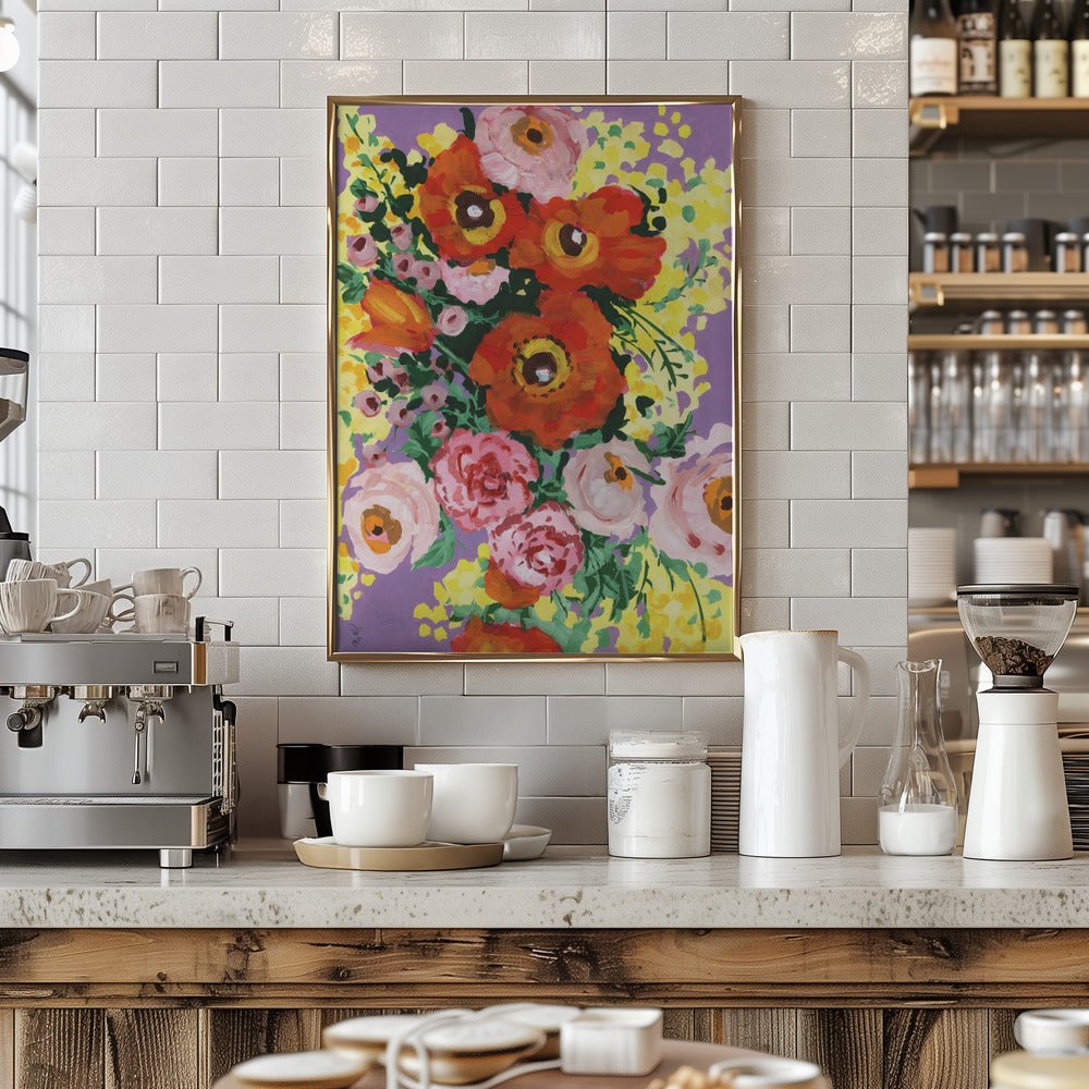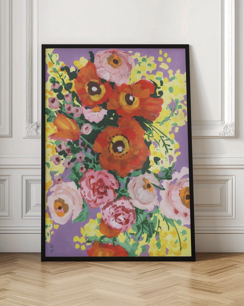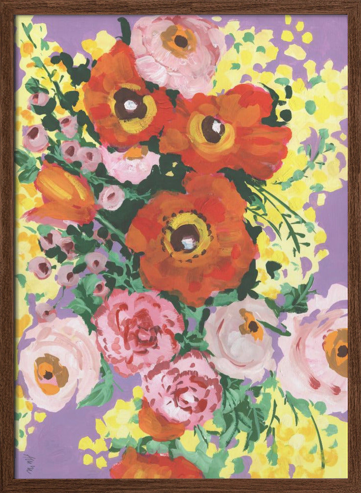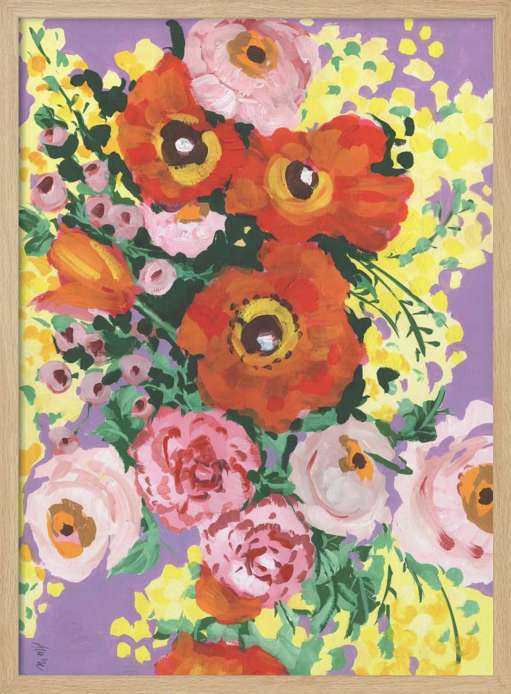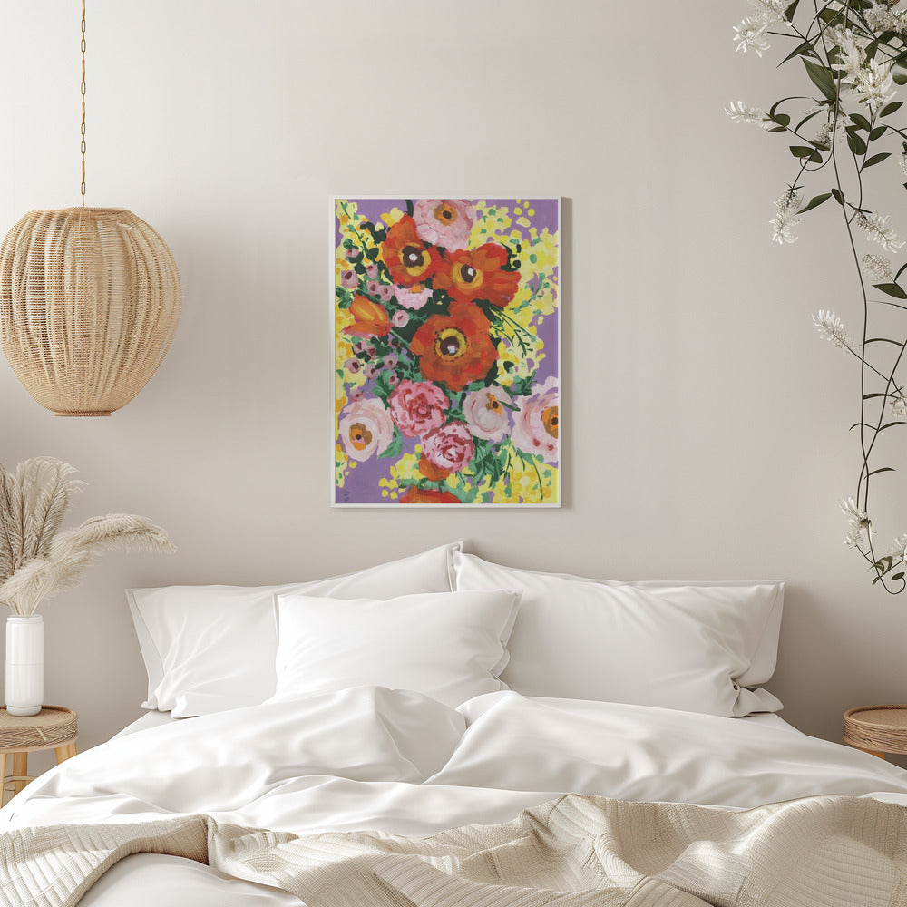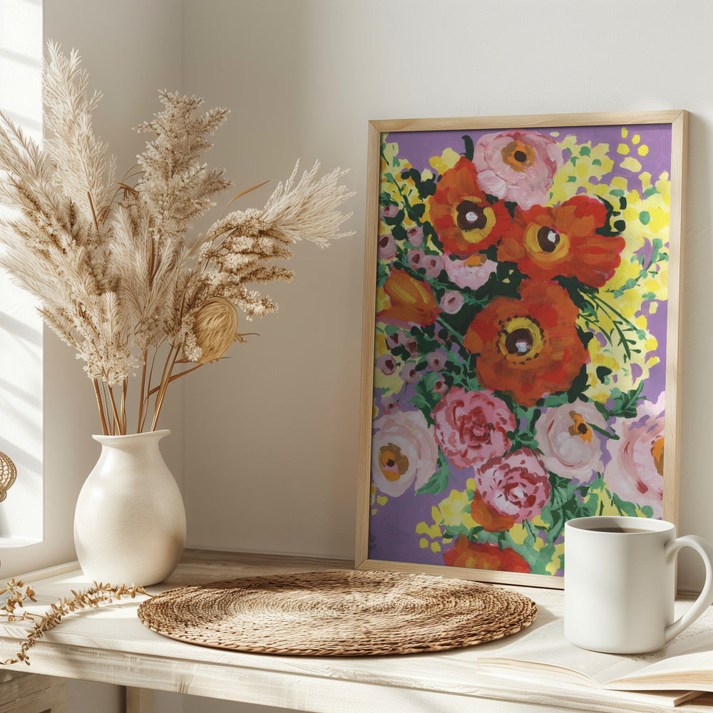Explore our many print options for Red And Pink Bouquet On Violet by artist Ania Zwara.