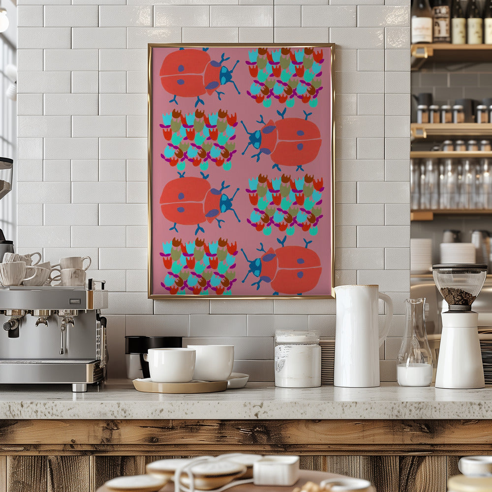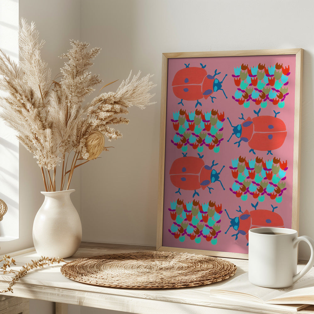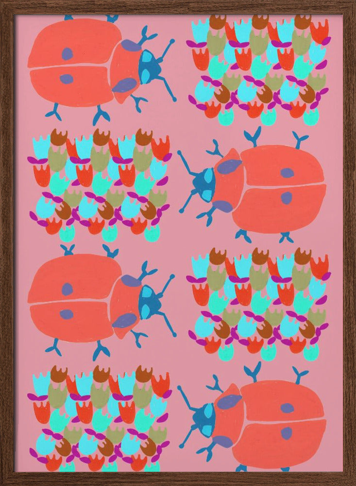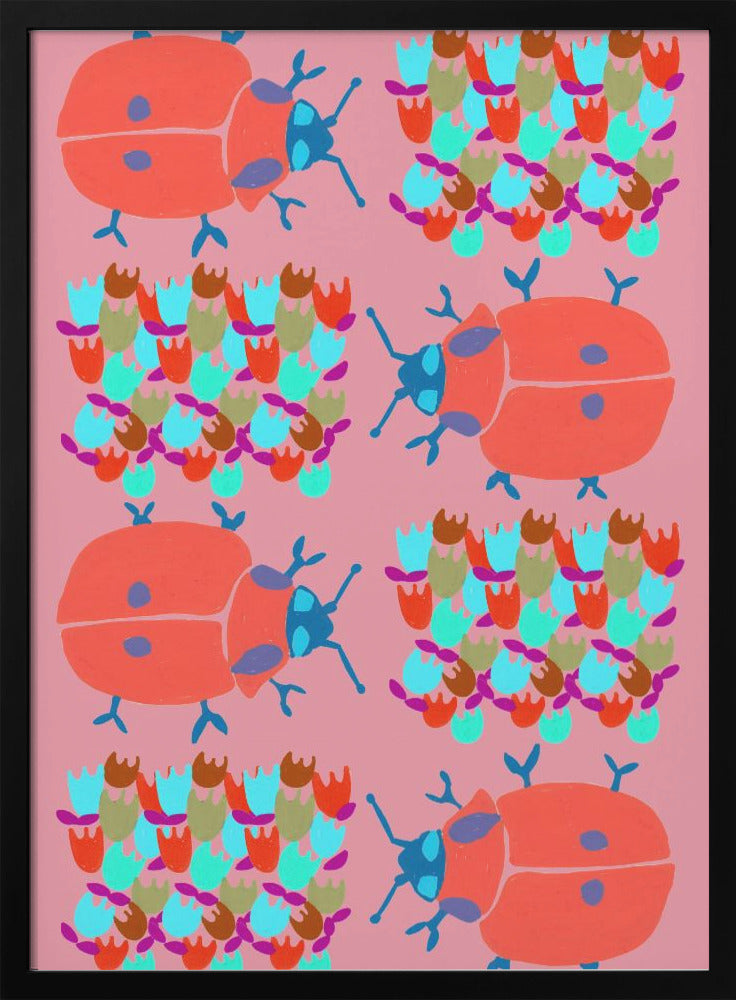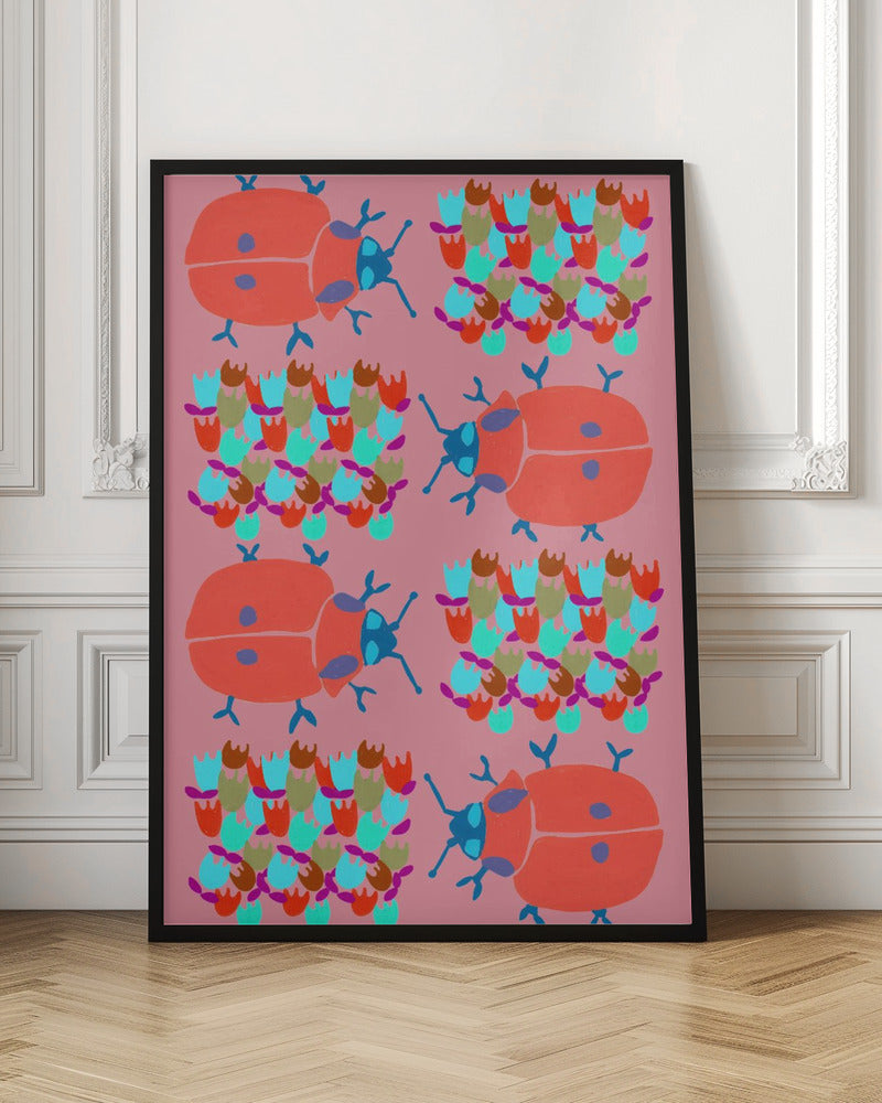 Explore our many print options for Red Ladybugs In Flowers by artist Ania Zwara.