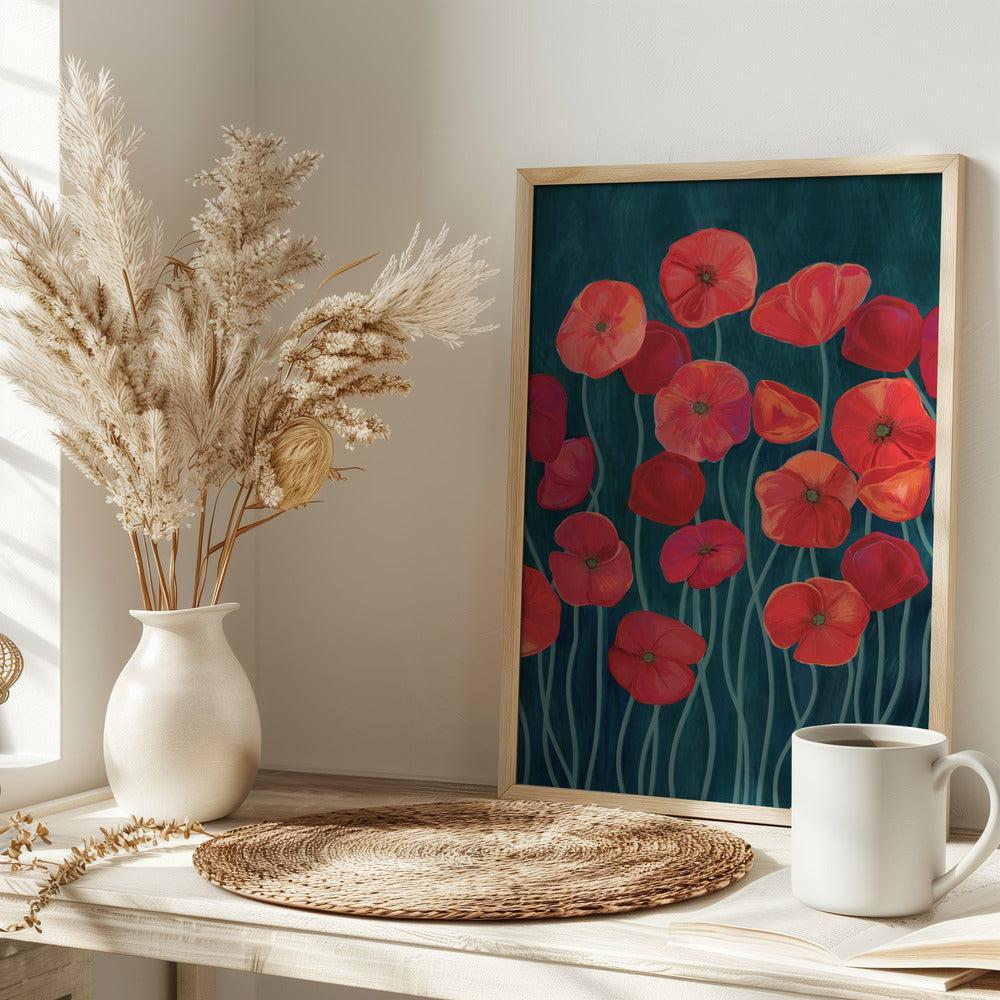 Explore our many print options for Red poppies by artist EMELIEmaria.