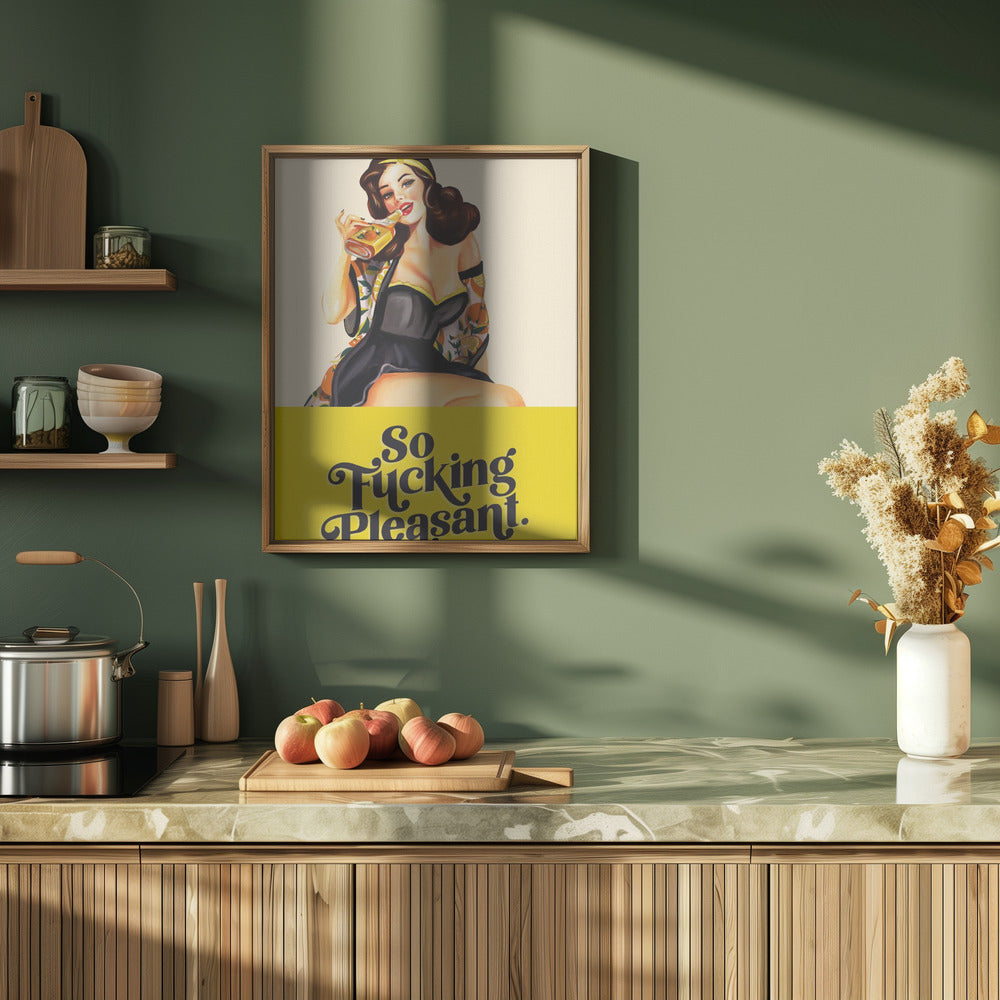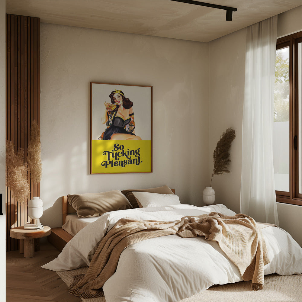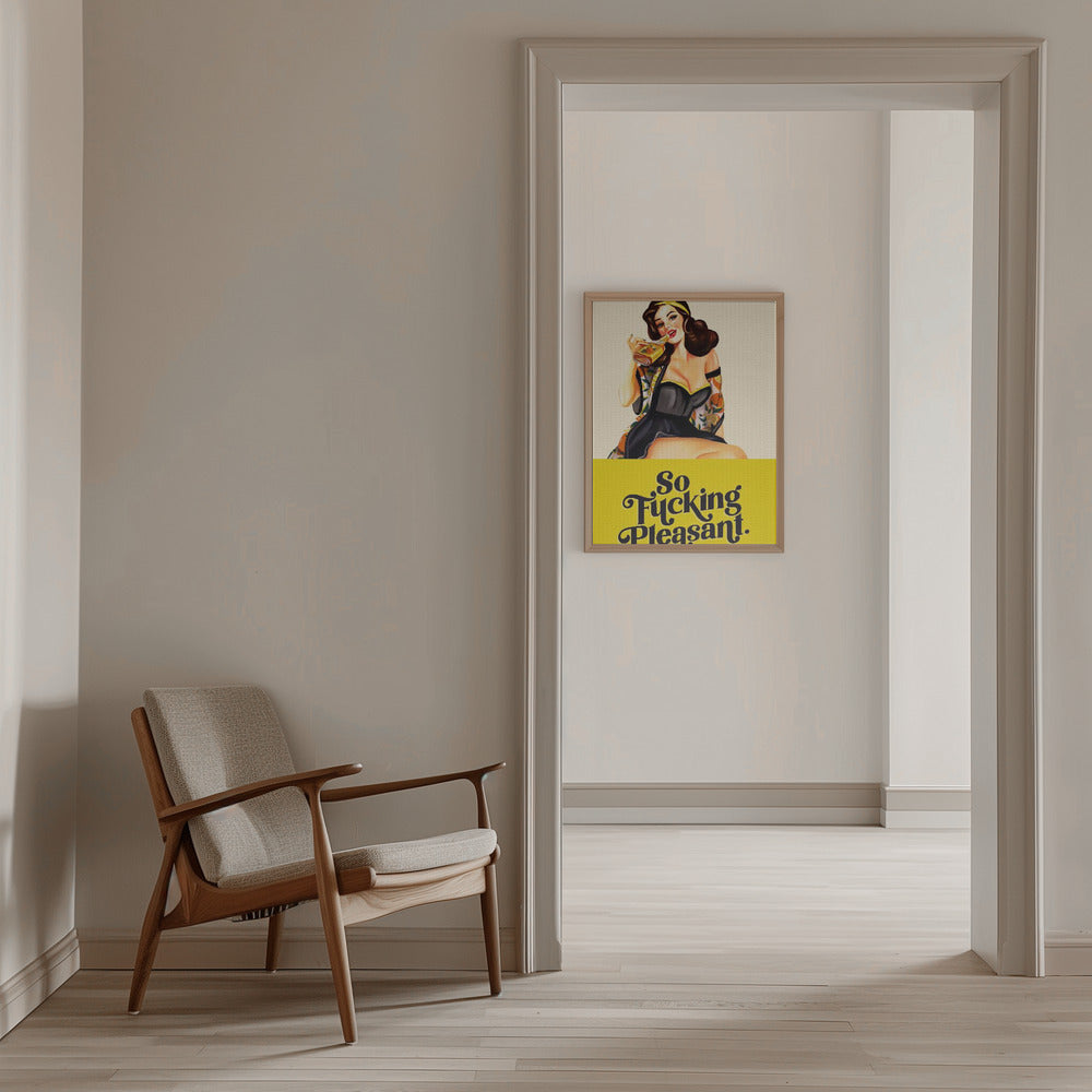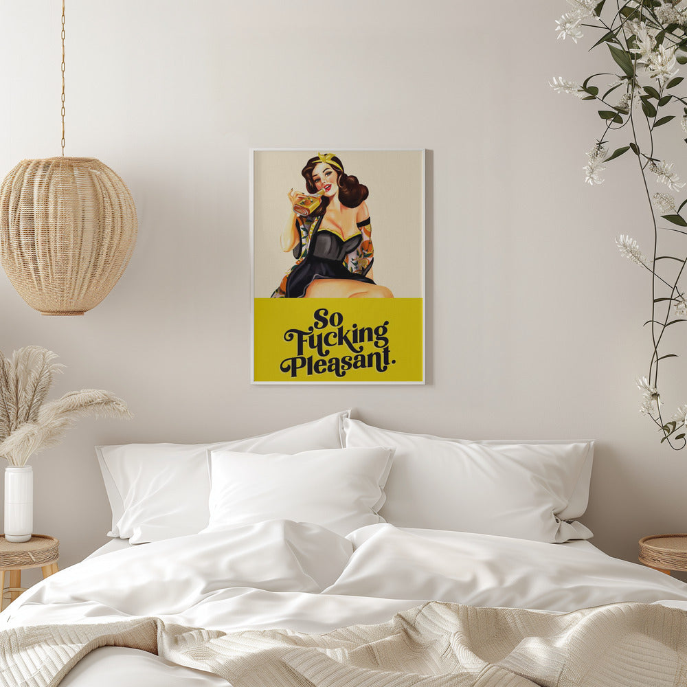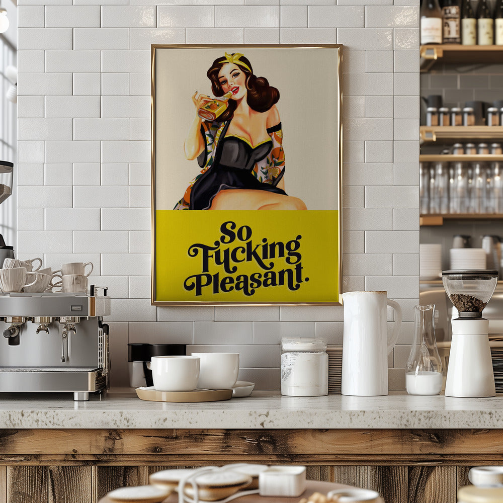 Explore our many print options for So Fucking Pleasant Art Deco Pinup Girl by artist The Whiskey Ginger.
