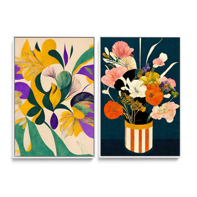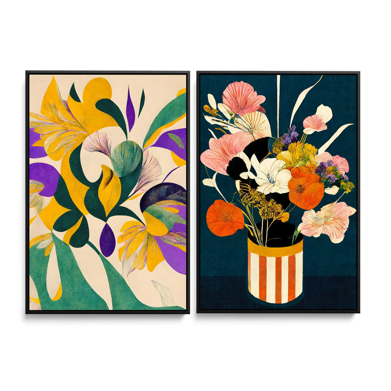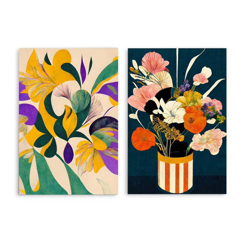 Experience the beauty of nature with Treechild's Spring flowers and Flowers At Night art set. This two-piece stretched canvas or art print diptych captures the vibrant colors and delicate details of flowers in both daylight and moonlight.
