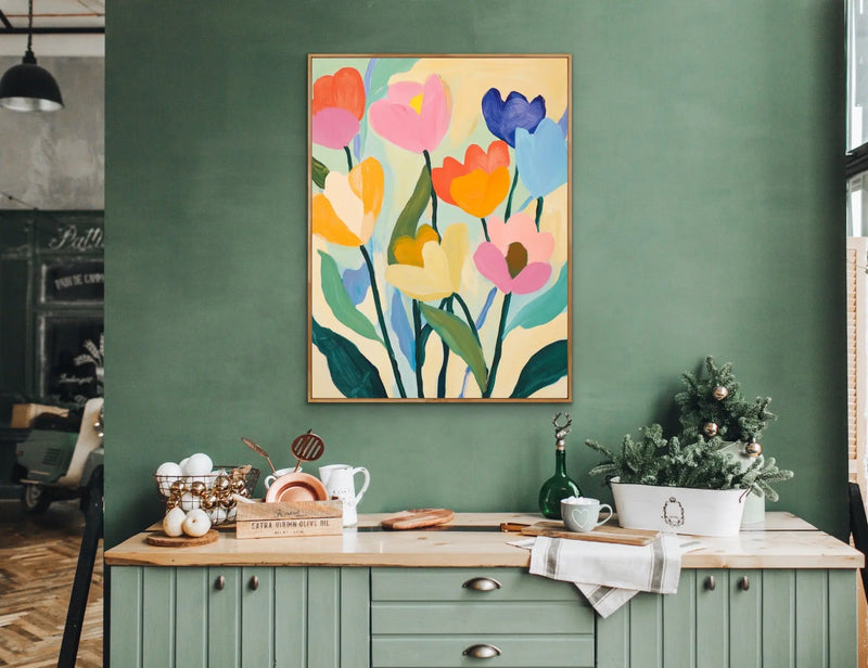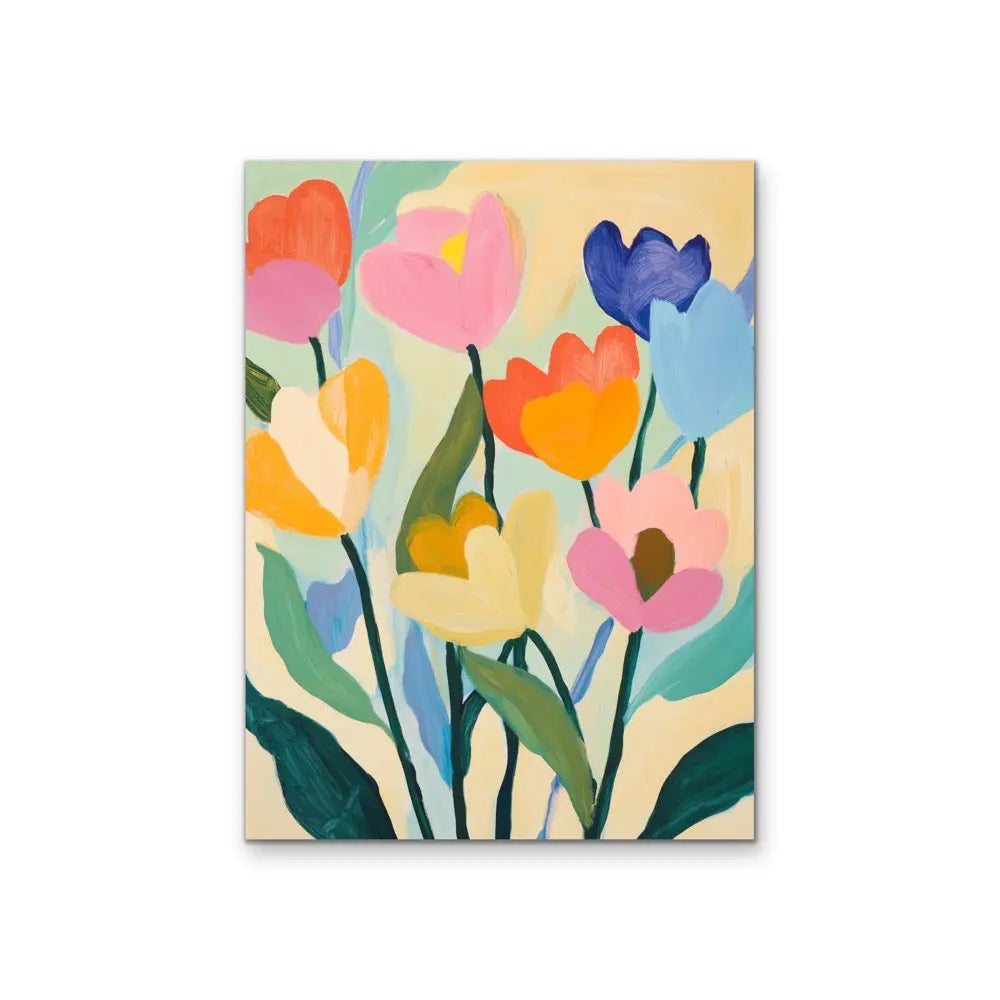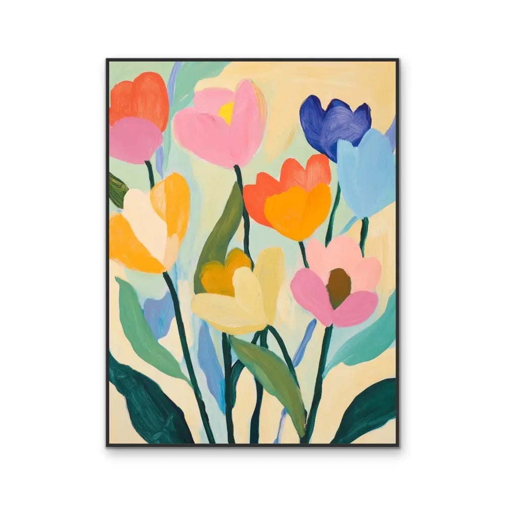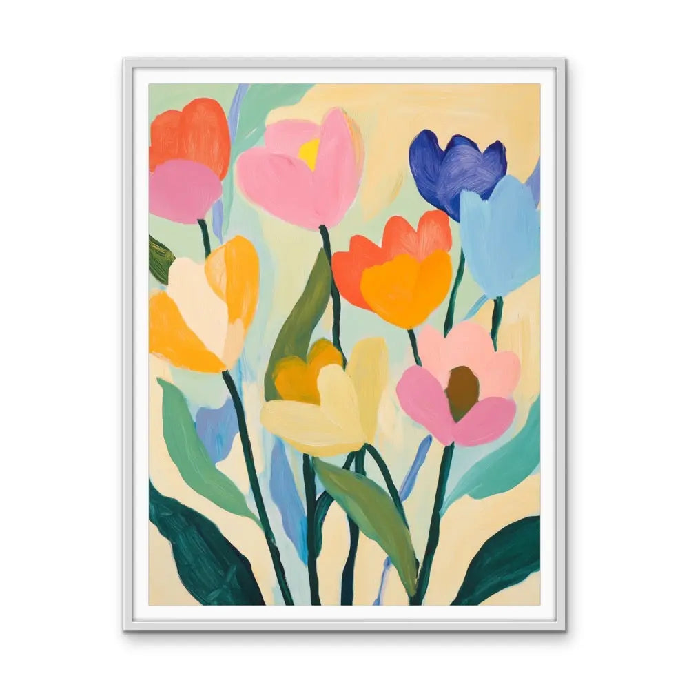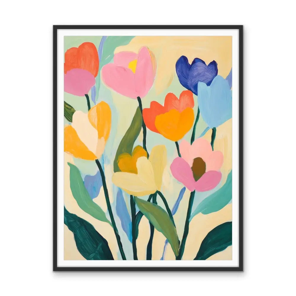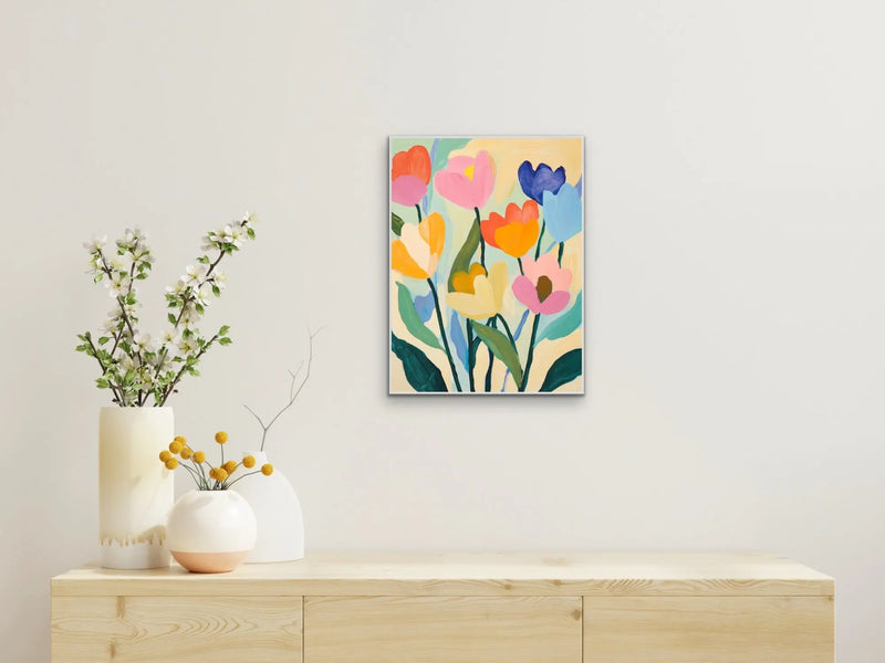 Add a floral touch to your home with this simple yet colourful flower artwork with pinks, blues, orange and yellow.