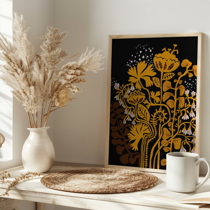 Explore our many print options for Stockholm garden autumn night by artist Annick.