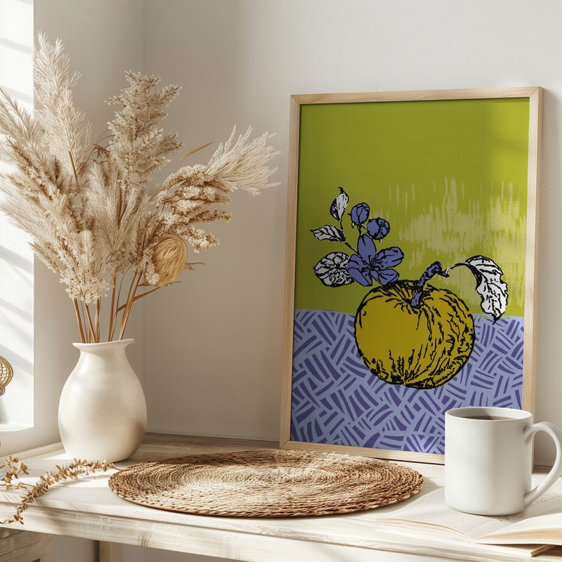 Explore our many print options for Super fruits – Apple temptation by artist Annick.