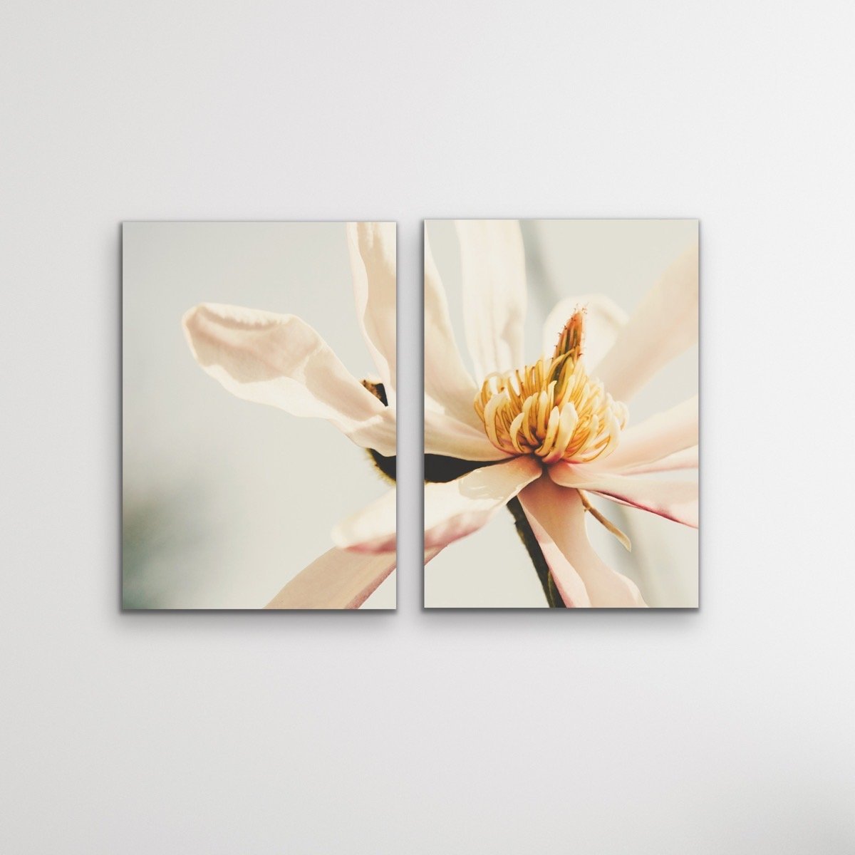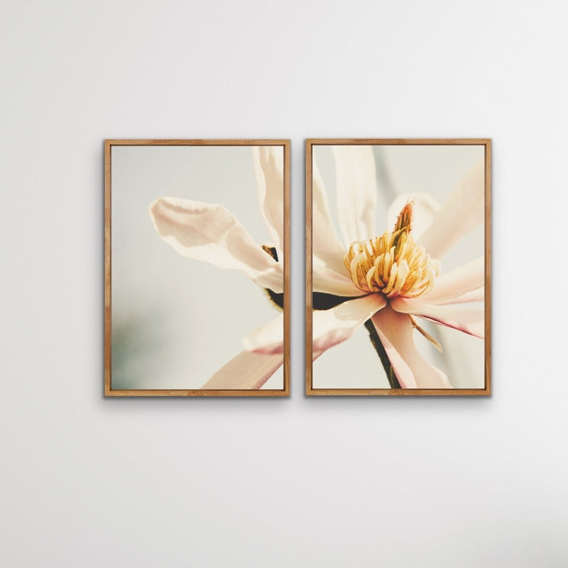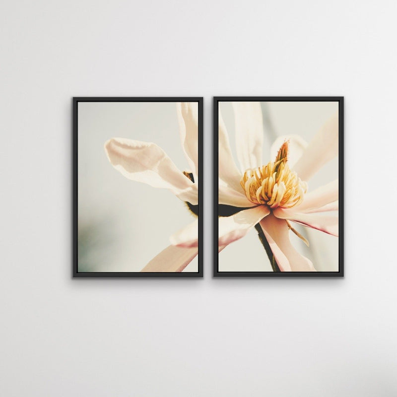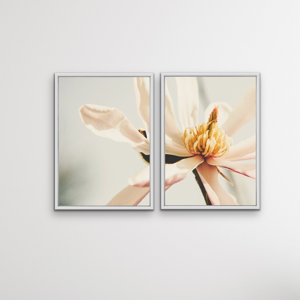 Sweet Magnolia - Two Piece Soft Floral Stretched Canvas Framed Wall Art Oil Painting - I Heart Wall Art