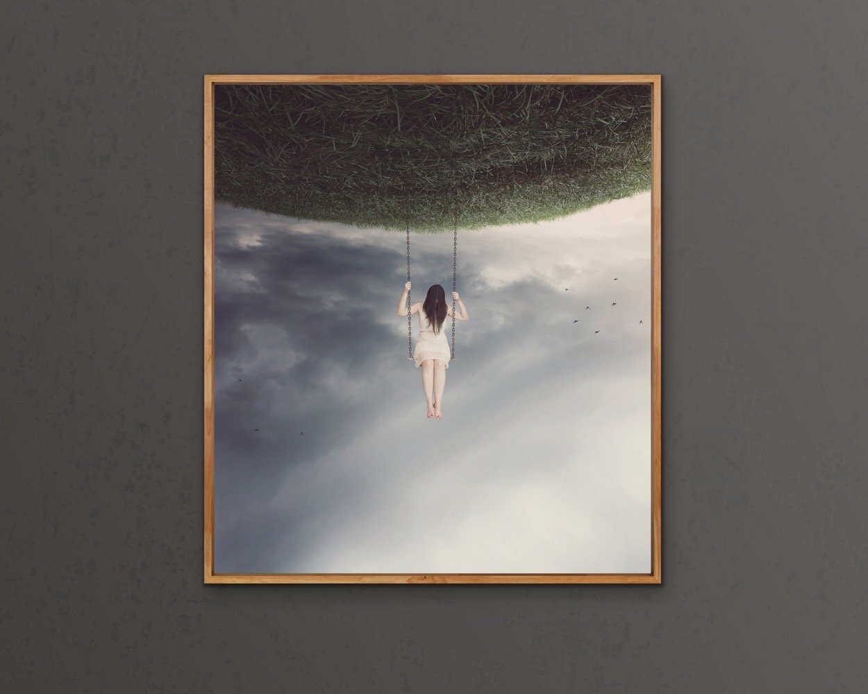 This surreal print is a beautiful, soft work of a woman swinging from an upside down Earth. It's a beautiful, contemporary piece for when you're looking for something a little bit different.