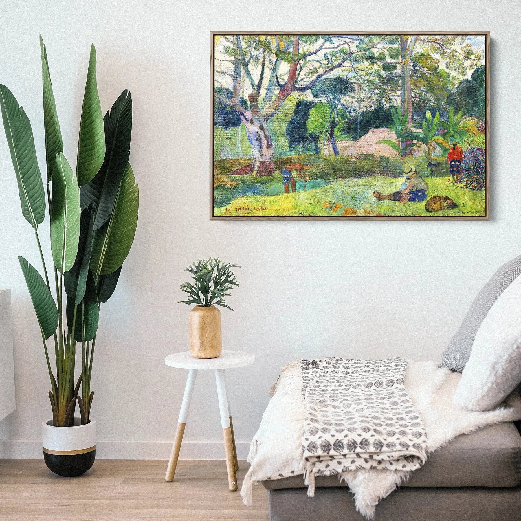 Gorgeous tones of green dominate this masterpiece by Paul Gauiguin.