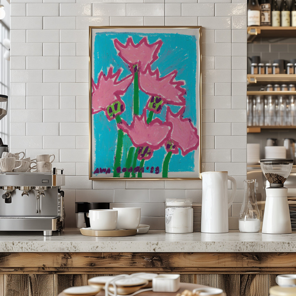 Framed Art Prints: Our framed art prints are printed onto a good quality textured art paper. A white border surrounds the design. A solid timber frame in one of four colours and a plexiglass front complete the piece.