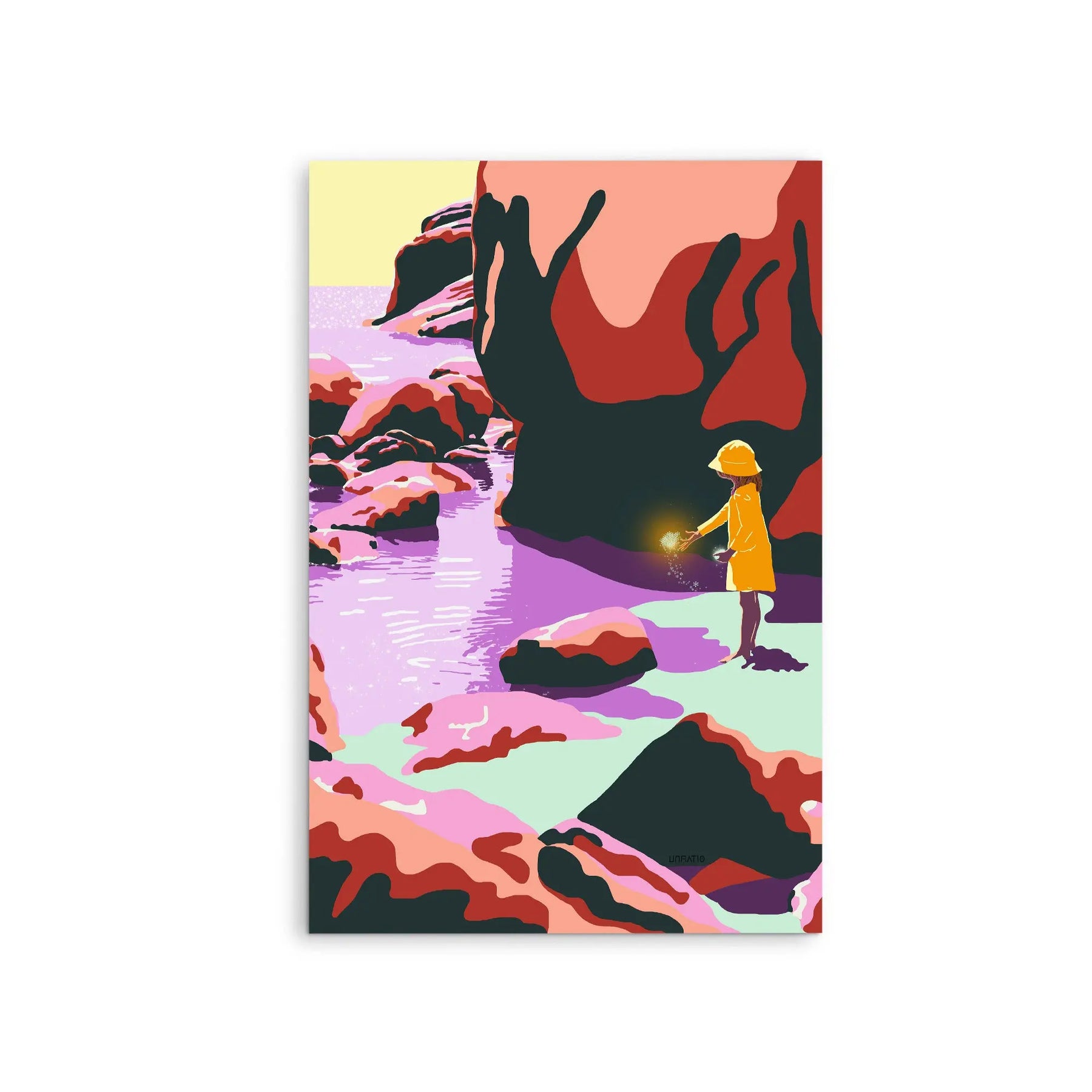 Celebrate the beautiful colour and shape of Tasmania with Unratio's joyous collection. These bold, bright artworks celebrate the magic of Tasmanian days at the beach. Unratio is a contemporary artist based in Tasmania. "I started making art under the name, Unratio (meaning abstract not in proportion or pattern) in 2018. My work is the fine art of flowers, nature and the sea, inspired by summer colour and heritage patterns. My bright, colourful, abstract landscapes and nature drawings, capture the carefree spirit of childhood imagination and joy. My art is about a place that lives in colour and memory. A beautiful nostalgia with prevailing optimism. I draw the summer of dreams. I often get told that my work reminds people of their own coastal memories. It is humbling and motivating that we can relate to each other through a shared connection to our landscape."Unratio, St Helens, Tasmania.