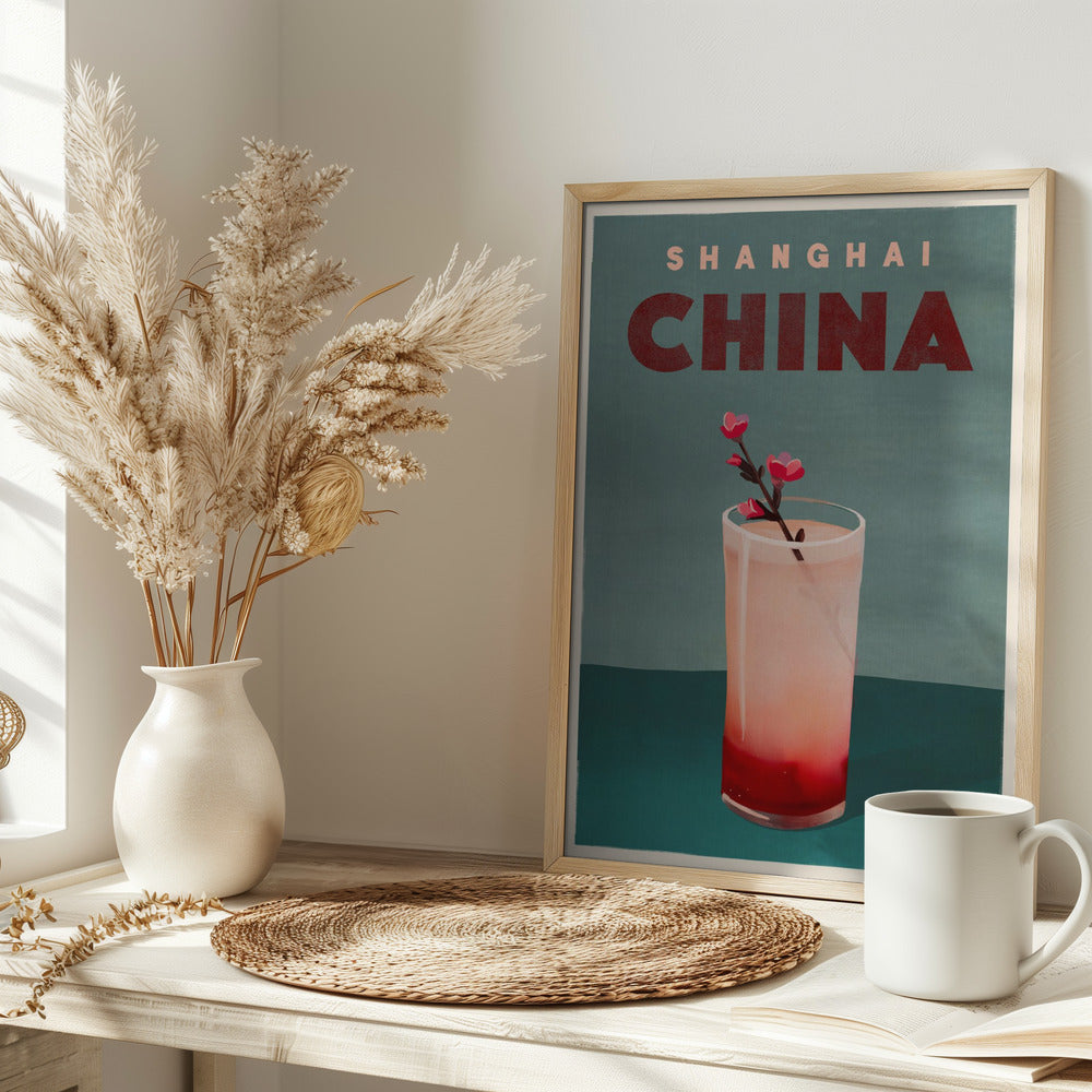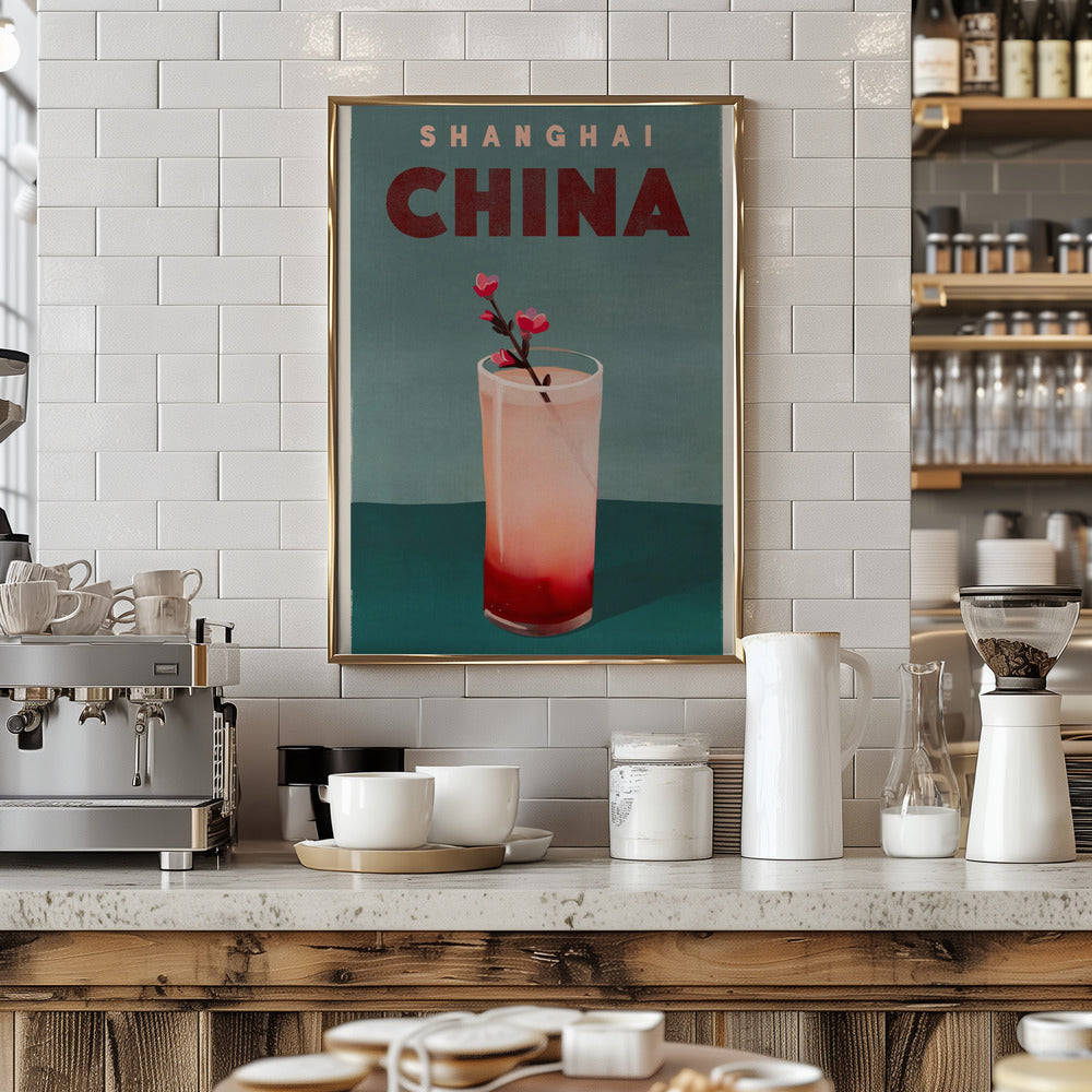 Explore our many print options for Travel Poster Cocktail Shanghai China by artist The Whiskey Ginger.