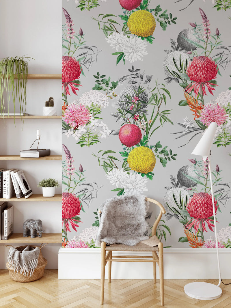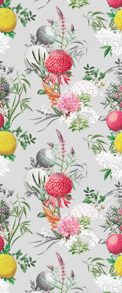 Verano In Grey - Pink Yellow and Grey Floral Wallpaper