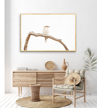 This gorgeous light toned print features a delicate white kookaburra against a white backdrop. We love this soft, gentle piece and this gorgeous Kooky!
