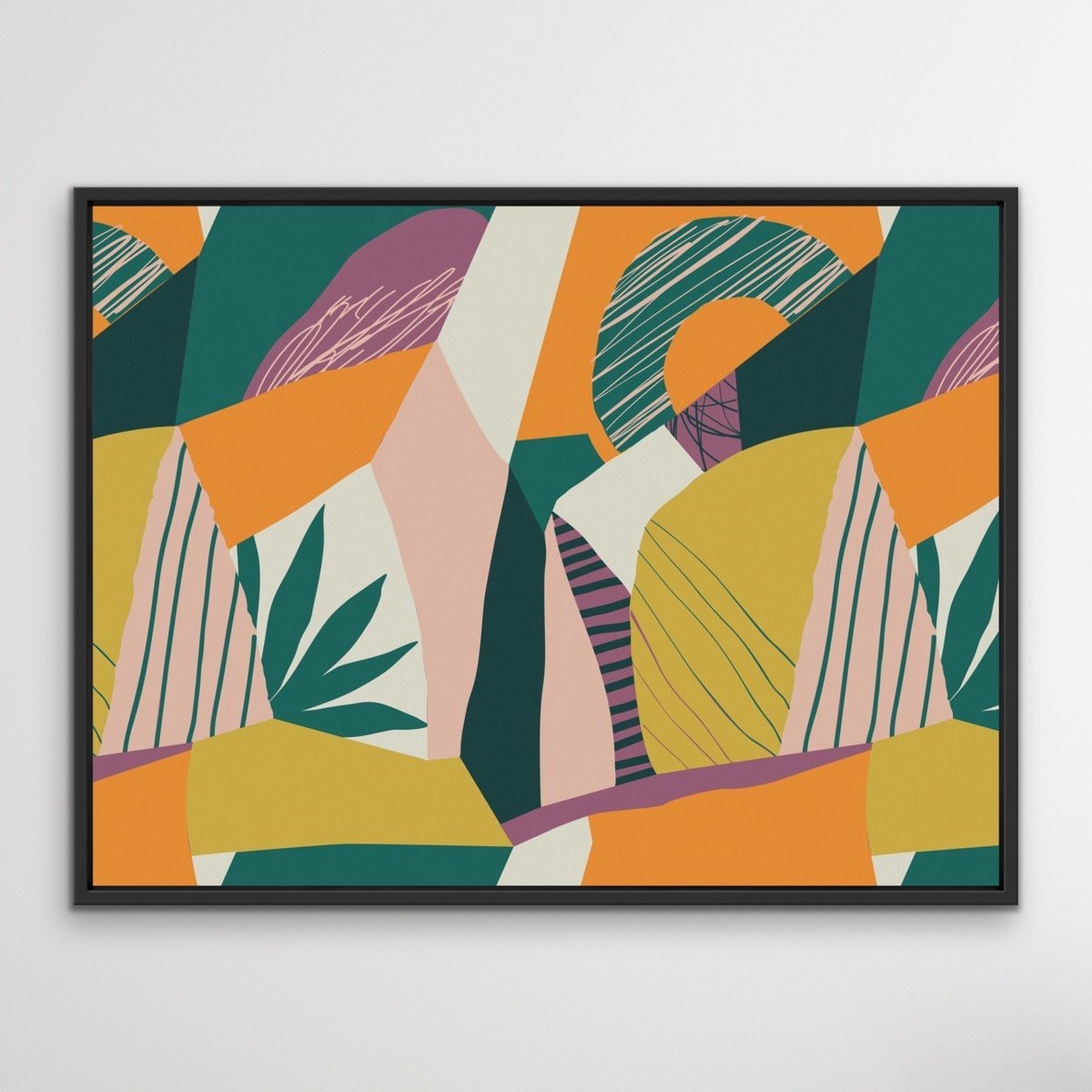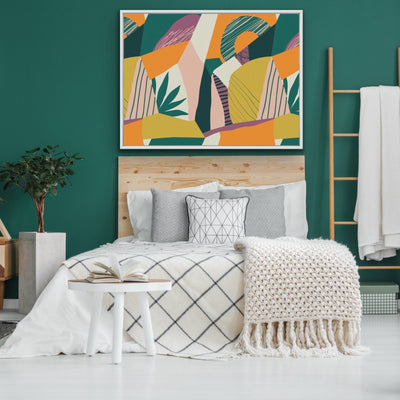 Wilderness- Green Orange Jungle Foliage Monstera Graphic Wall Art Print on Canvas