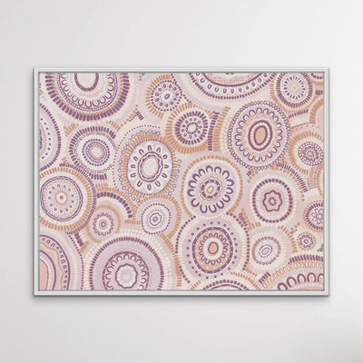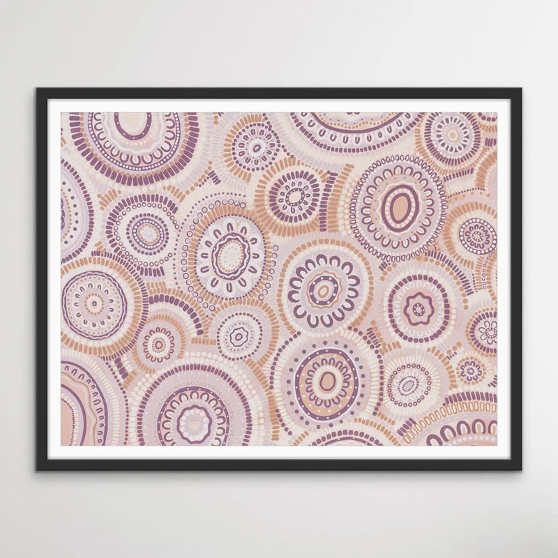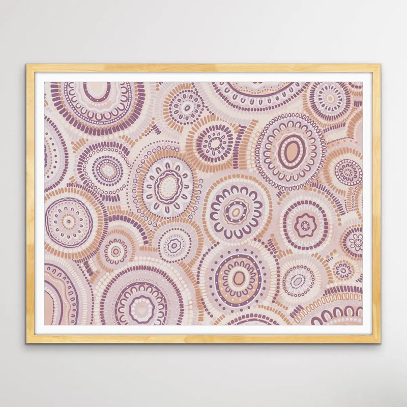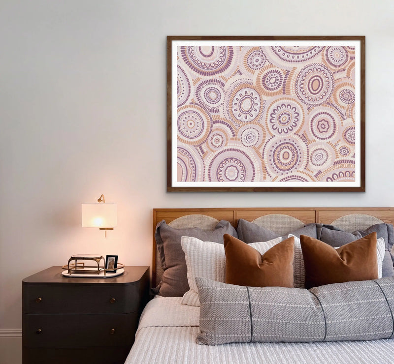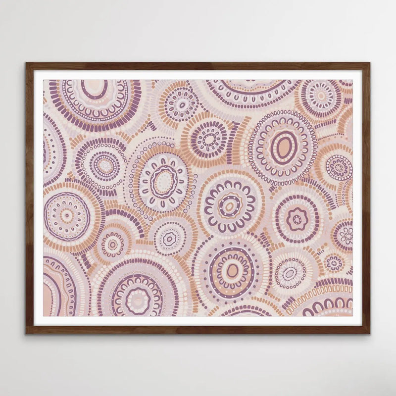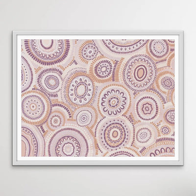 Wildflowers Blooming Gathering - Soft Purple-  Aboriginal Art Print By Leah Cummins I Heart Wall Art Australia