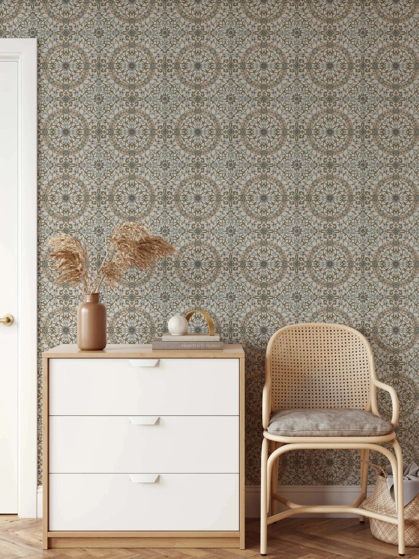 William Morris Pattern 1 Wallpaper - Green and Blue Vintage Wallpaper