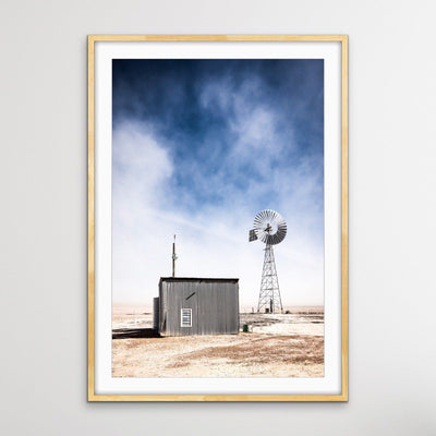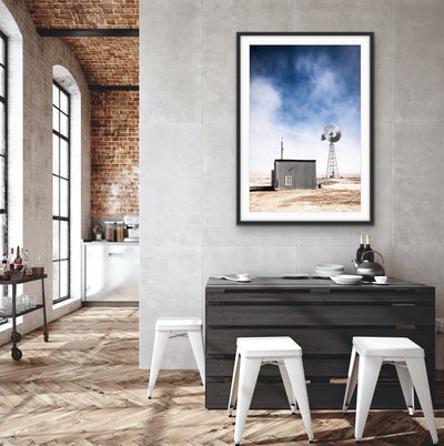 This stunning photographic print features an Outback windmill and shed against a dark sky. We absolutely love this print - it's evocative and subtle enough to be loved for a lifetime.